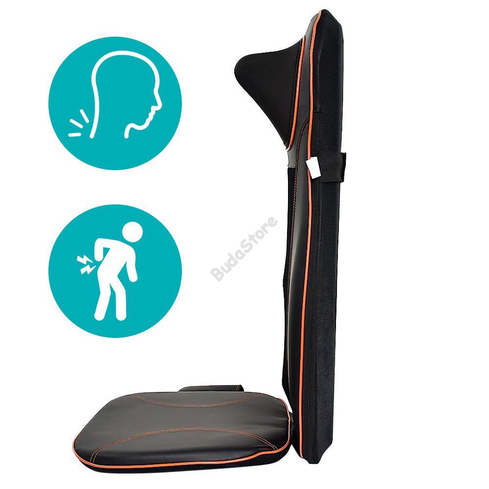3 fő funkciójával, mint a shiatsu masszázs, a gyúrómasszázs és a vibrációs masszázs biztosan megtalálod a neked legmegfelelőbb módot. Különböző zónákra osztottuk, így lehetőséged van külön a hát alsó és felső illetve a teljes hátmasszázsra is. A masszázs ülésbetétet nem csak melegítő funkcióval láttuk el, de képes a fel-le mozgással, a pontnyomásos technikával és a nyaki gyúrómasszázzsal könnyíteni fáradt izmaidon. A beépített vibrációs funkció külön vezérelhető. A készülék 15 perc után automatikusan kikapcsol. Hálózati adapterrel és szivargyújtóval egyaránt működtethető.