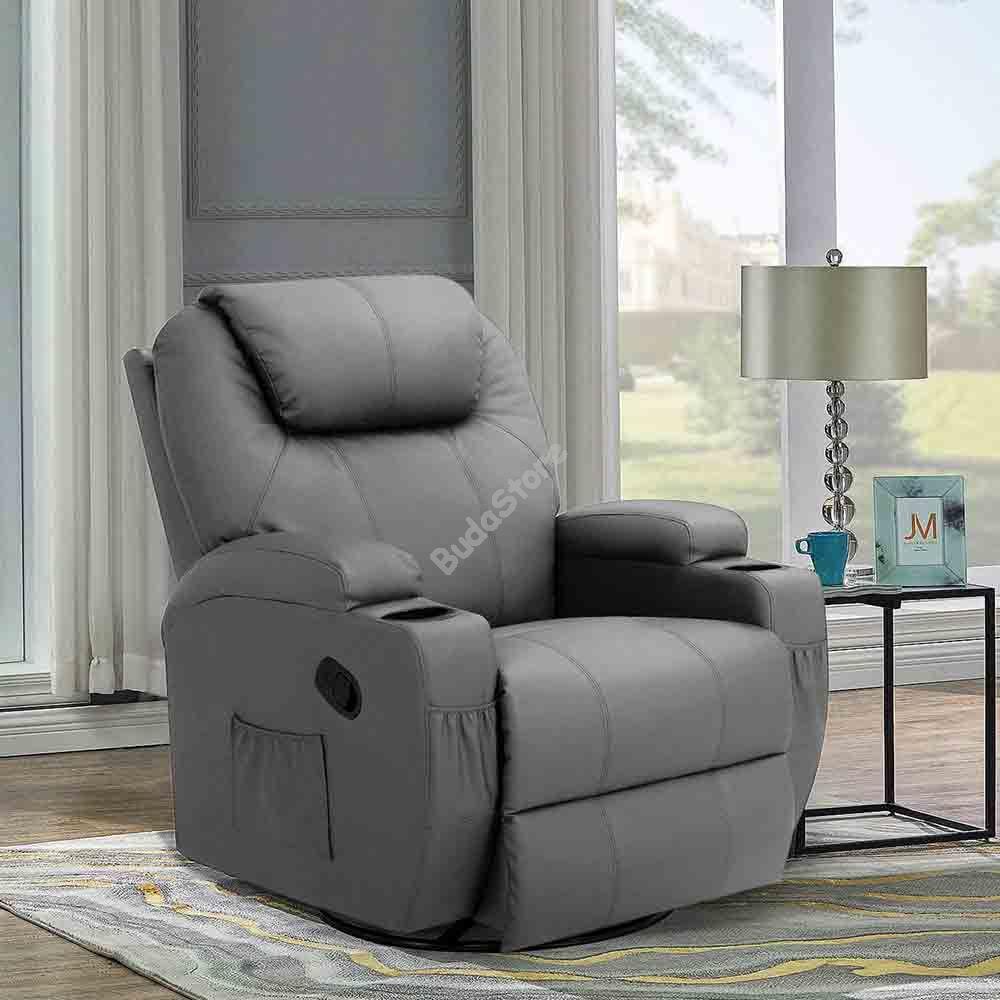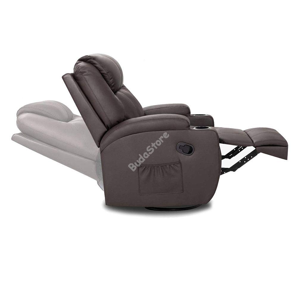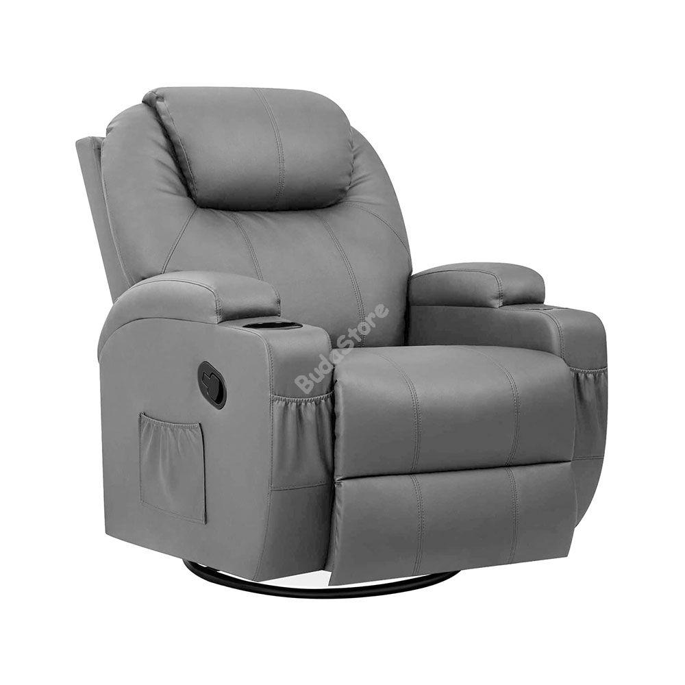 Lazulj el teljesen a profi masszázsfotel segítségével! A fotel 8 masszázsponttal van ellátva, melyek a vállat, a hátat, a feneket és a lábakat is egyaránt masszírozzák. Melegítő panelének köszönhetően kellemes meleget áraszt, mely segít enyhíteni a feszültséget. Kör alakú tartóján a teljes fotel 360 fokban elforgatható. Élvezd a tökéletes kényeztetést a nappalidból, olvasás vagy TV nézés közben! A fotel magassága, háttámlája és lábtartója egyaránt állítható. Ezek mellett a karfákba helyezett pohártartók és az oldalsó zsebek gondoskodnak az igazán kényelmes használatról.