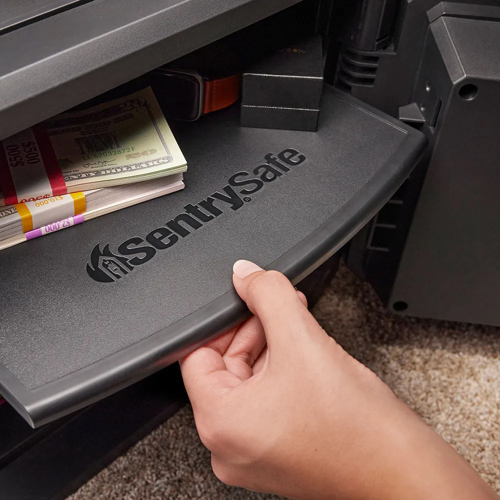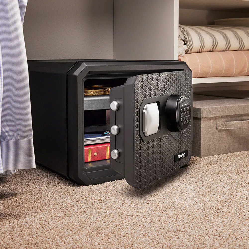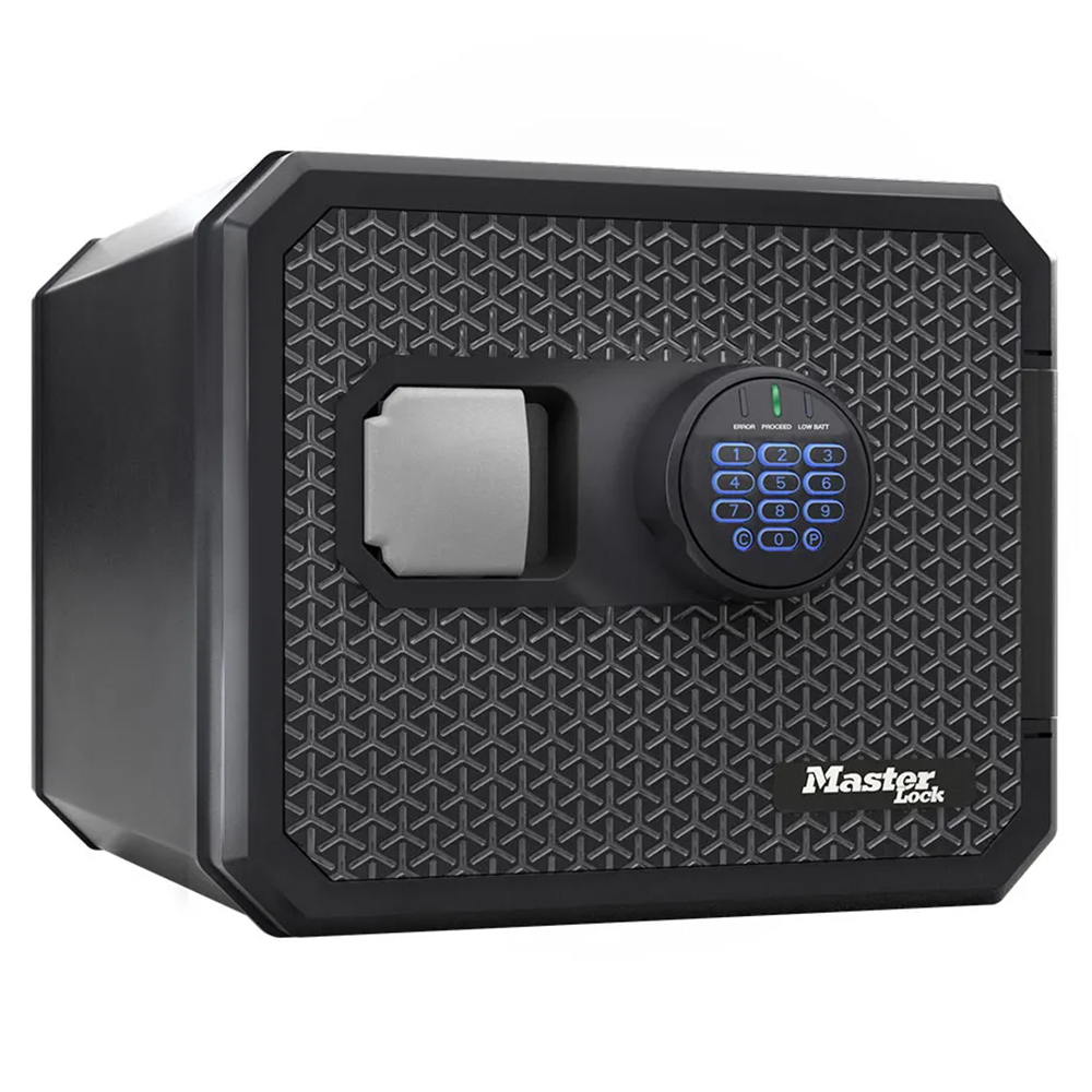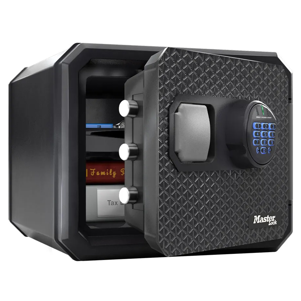Master Lock FPW082 Fekete tűz- és vízálló széf MLFPW082 154 640 Ft / db Gyártó: Master Lock Cikkszám: S005_MLFPW082 Vonalkód (EAN13): 0071649371530 Súly: 25,00 kg Master Lock FPW082 Fekete tűz- és vízálló széf MLFPW082UL / ETL szerint bevizsgált tűz- és vízálló széfUL szerinti 60 perces tűzvédelem (927C-on tesztelve)készpénz, irat, digitális adathordozók tárolására ajánlottduplafalú acél test, hőszigetelő töltettelműanyag belső burkolat és ajtóborításelektronikus számkombinációs zárvilágító gumi billentyűzetkét felhasználói kód (átállítható)egy mester kód (nem állítható)manipuláció elleni védelemtároló rekeszek és kulcstartó horogok az ajtónkihúzható, átrakható műanyag tálcabelső világításrögzítő csavarokkal áruljukTulajdonságokZárszerkezet:ElektronikusMagasság:348 mmSzélesség:417 mmMélység:418 mmBelső magasság:244 mmBelső szélesség:320 mmBelső mélység:292 mmŰrtartalom:22.9 lSzín:FeketeTömeg:25 kg Mennyiség db Kosárba tesz
