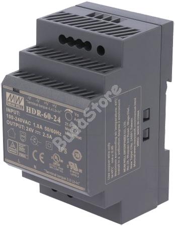 Mean Well HDR-60-24 kapcsolóüzemű tápegység 116634 8 010 Ft / db [2 db 2%] [5 db 3%] [10 db 5%] Gyártó: MEAN WELL Cikkszám: S003_116634 Átvétel: Ez a termék boltunkban személyesen is átvehető. Mean Well HDR-60-24 kapcsolóüzemű tápegység 116634 DIN sínre szerelhető kapcsolóüzemű tápegység, 24VDC, 0-2.5A, 60W. - DIN sínre szerelhető kapcsolóüzemű tápegység. - Bemeneti feszültség: 85-264VAC/120-370VDC. - Kimeneti feszültség: 24VDC, 0-2.5A. - Teljesítmény: 60W. - Méretei: 52.5 x 90 x 54,5mm. Mennyiség db Kosárba tesz