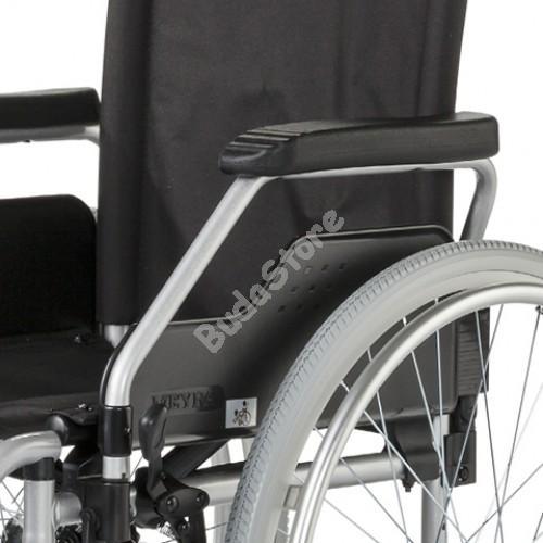Meyra Budget 9.050 kerekesszék 40cm 93 270 Ft / db [2 db 2%] [5 db 3%] [10 db 5%] Gyártó: MEYRA Cikkszám: S035_800101 Súly: 18,00 kg Meyra Budget 9.050 kerekesszék 40cm Összecsukható, sztenderd kivitelű, nagy terhelhetőségű, acélvázas kerekesszék. Összecsukható váz Felhajtható és kivehető kartámasszok Felhajtható talptámasz Magasságban állítható és levehető lábtartó Acél hajtókarikás tömör, rögzítőfékkel ellátott meghajtó (hátsó) és bolygókerekek (első) Lumbális hajlattal ellátott háttámla Könnyen tisztántartható gyöngyvászon üléstámla és ülőlap Kivehető hátsó kerekek Javasolt nagyfokú végleges járásnehezítettség esetén, ha a beteg egyéb járást segítő eszközzel hosszabb távú helyváltoztatásra képtelen. A kerekesszék főként rövid idejű használatra megfelelő. Azt a célt szolgálja, hogy Ön képes legyen beltéri (lakás, gondozó otthon) mozgásra, lakásának rövid idejű elhagyására, friss levegőn tartózkodhasson és eljuthasson lakásának környezetében lévő, az életviteléhez tartozó helyekre, mint például bevásárló hely, gyógyszertár stb., valamint elérje és használni tudja a tömegközlekedési eszközöket. Alkalmazható továbbá kórházakban, rendelőintézetekben, valamint minden olyan intézményben, ahol mozgássérült, ill. helyváltoztatási nehézségekkel küzdő, vagy attól orvosilag eltiltott személyeket (betegeket) kell különböző okok miatt mozgatni. Sztenderd kivitelű, nagy terhelhetőségű, acélvázas kerekesszék. A kartámasza csapott kivitelű, mely asztal mellett is használható, valamint az Ön kényelme érdekében magasságban állíthatóak. A kerekesszékbe való beülést és kiszállást segítendő a kartámaszok fel- és hátrahajthatók, kivehetők, valamint ruhavédő lemezzel vannak ellátva.Nagyon jó gördülési tulajdonsággal bíró kerekesszék, melynek ideális súlypont elhelyezése lehetővé teszi a járdaszegélyekre történő könnyű feljutást (ezért elsősorban dinamikus, megfelelő egyensúlyérzékű embereknek javasoljuk). Ezüst színű porlakkozott kivitelben készül fekete gyöngyvászon háttámla és üléshuzattal. A kerekesszék sokrétű beállítási lehetőségei garantálják, az Ön igényeinek legjobb kielégítését. A vádli tartó tépőzáras heveder megakadályozza a lábak hátracsúszását a talptámaszról. A heveder hossza a tépőzárak oldása után a kívánt hosszra beállíthatóak. Termék jellemzők Beülőszélesség: 38 cm, 40 cm, 43 cm, 46 cm, 48 cm, 51 cm Beülőmélység: 43 cm Ülésmagasság (Ülőlap magassága a földtől mérve): 47 cm (párna nélkül) Háttámla magasság (ülőfelülettől): 42 cm Súly: 17,5 kg Teljes szélesség: Beülőszélesség + 18 cm Összecsukott szélesség: 28 cm Hosszúság: 102-108 cm (lábtartóval) Magasság: 96 cm Legnagyobb terhelhetőség: 130 kg Első kerekek átmérője és fajtája: 180 x 40 mm (7”) PU, tömör Hátsó kerekek átmérője és fajtája: 610 mm (24 x 1 3/8”) PU, tömör Max. akadálymagasság : 0-tól 100 mm-ig Minimális fordulási sugár: 1250 mm Mennyiség db Nem rendelhető