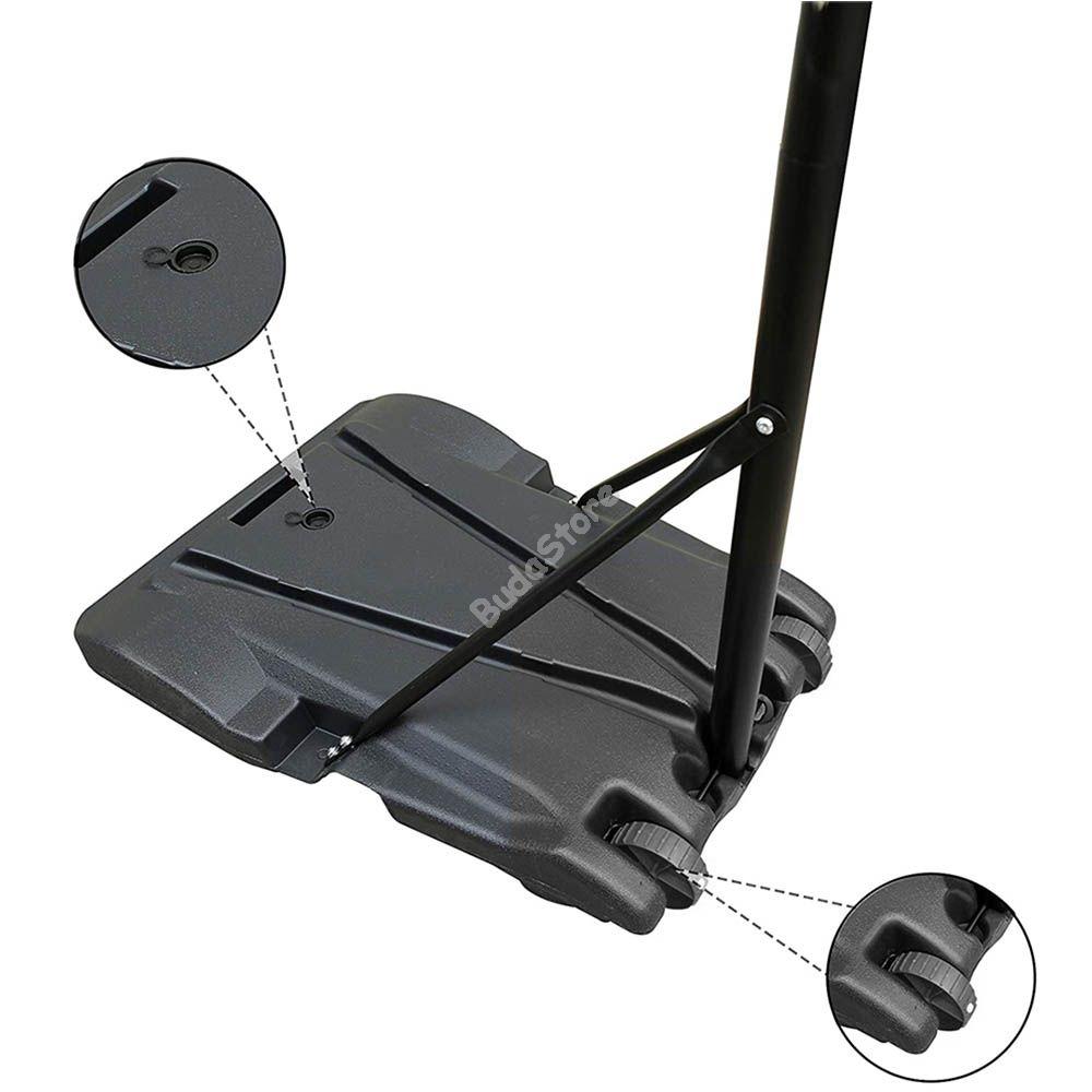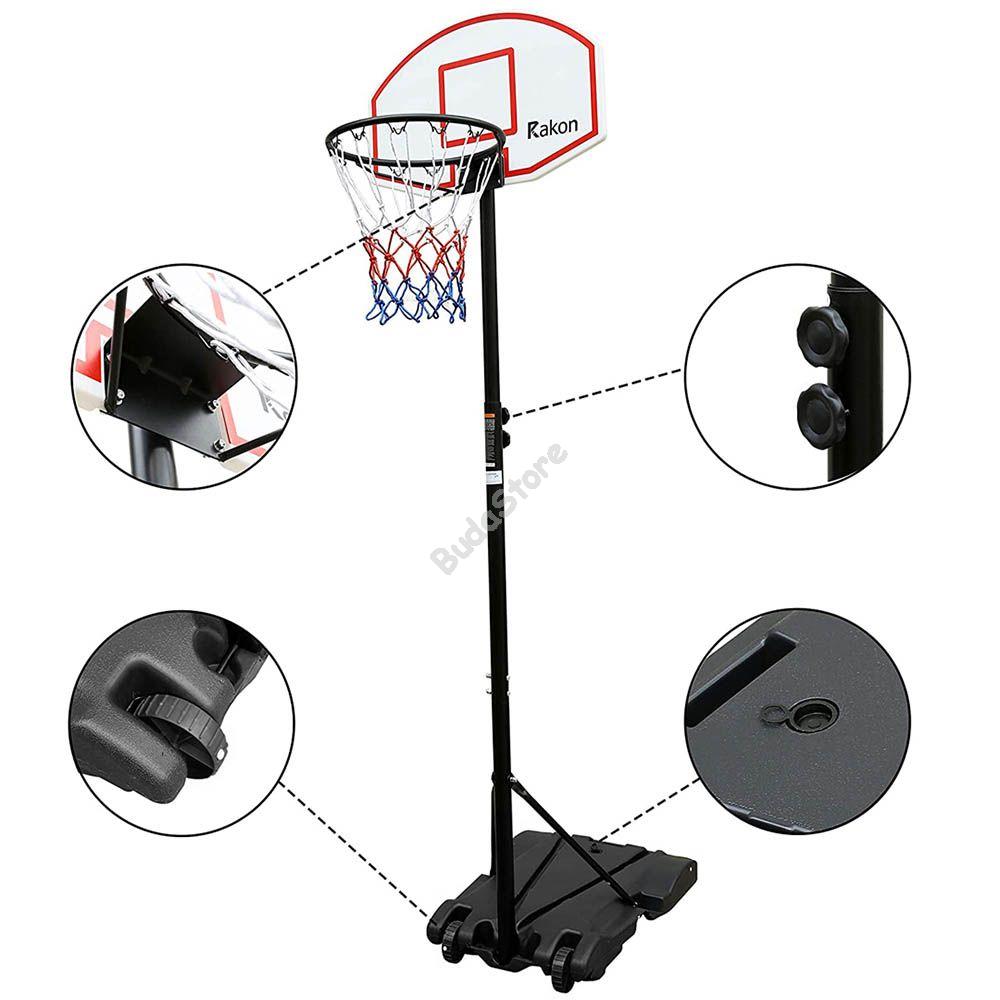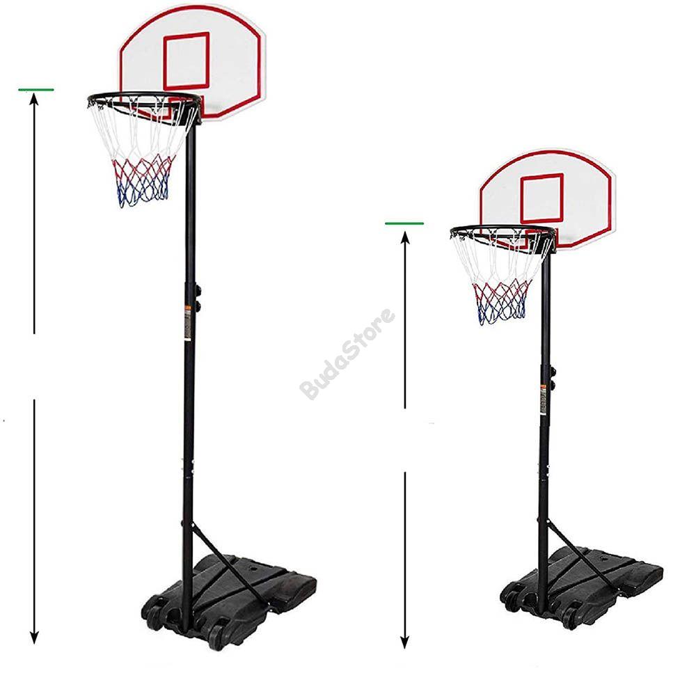 A mobil kosárlabda palánk remek szórakozást nyújt kicsiknek és nagyoknak egyaránt, akár kezdők számára is tökéletes választás lehet. Az erős fém oszlopnak és a vízzel vagy homokkal is feltölthető talpnak köszönhetően stabil, játék közben sem mozdul el a helyéről. A palánk magassága 6 fokozatban állítható, a fokok között 6 cm távolság van, minimális magassága 216 cm, maximális magassága pedig 247 cm. Így magasságtól függetlenül kitűnő választásnak bizonyulhat ez a gyakorló eszköz. A talpon két kerék található, ennek segítségével a szerkezet egyszerűen mozgatható, áthelyezhető a kert egyik végéből a másikba. Anyaga fém, műanyag és nylon, ezért időjárásálló, kül- és beltéren is használható.