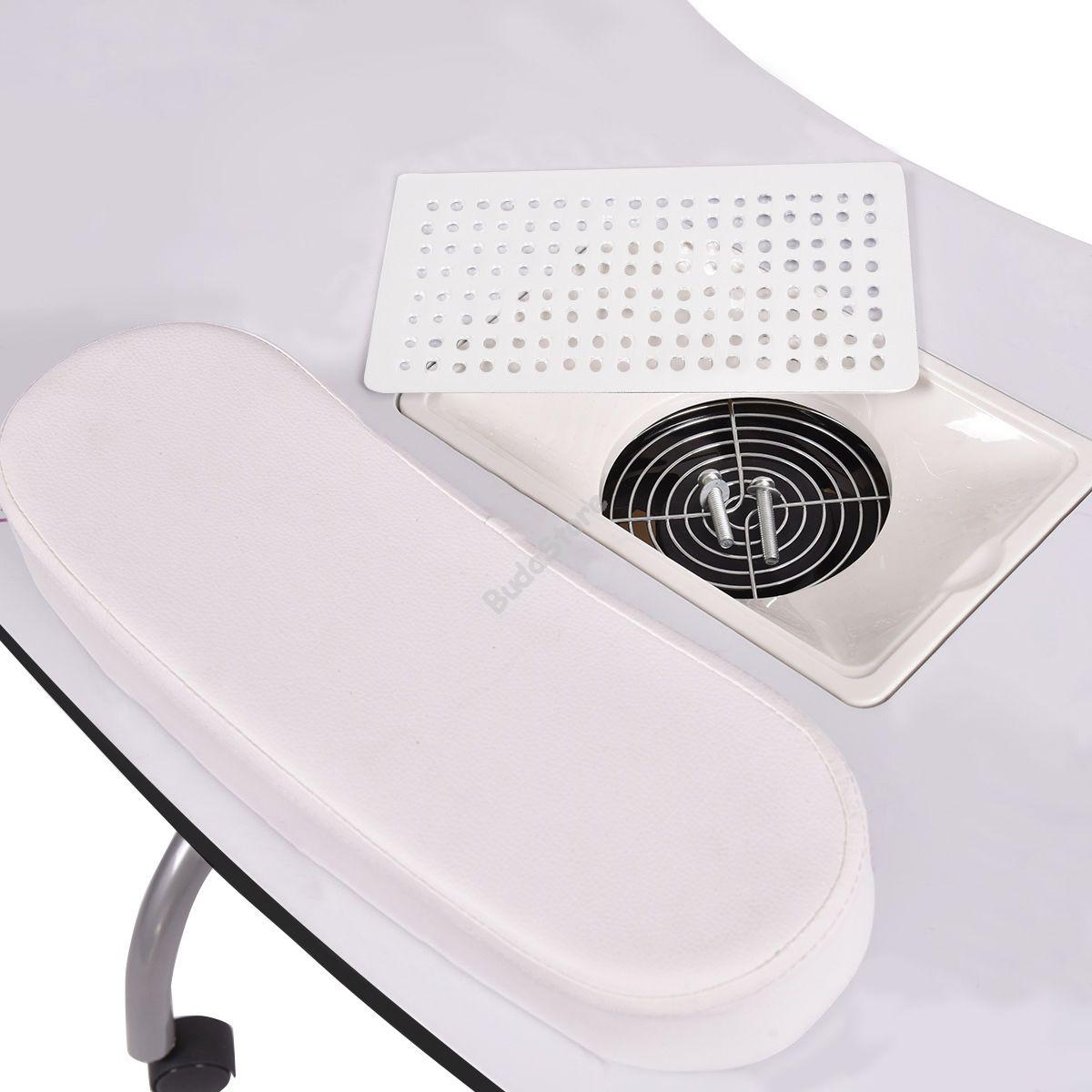 A manikűr asztalban beépített ventilátor található, mely a köröm reszelése során keletkezett port elszívja, az aljára tehető porzsák pedig összegyűjti azt. Kerekei segítségével egyszerűen mozgathatod, ha lefékezed őket, stabilan a helyén marad az asztal. Szivacsos kéztartója kényelmes és borítása gyorsan, egyszerűen tisztítható, akárcsak az asztal maga.