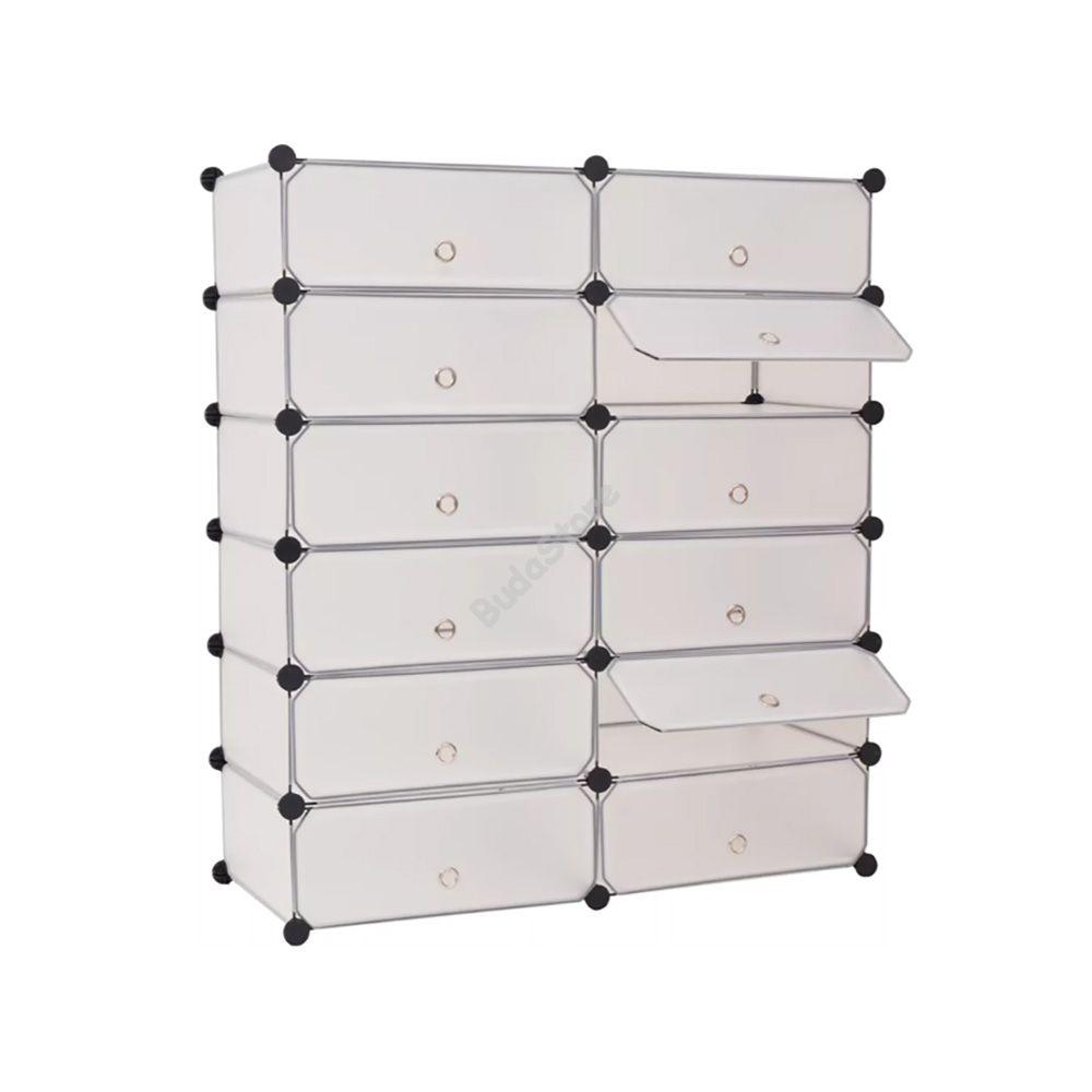 Műanyag elemes cipőtároló szekrényünket saját stílusodnak megfelelően, valamint a rendelkezésre álló térhez alkalmazkodva rakhatod össze. 2 féle szélességben és magasságban, állíthatod össze. 12 db rekeszt tudsz összerakni az alkatrészek segítségével, melyeket 6 sorban és 2 oszlopban helyezhetsz egymásra. Amenyibben keskenyebb, de magasabb hely áll rendelkezésre, úgy 9 rekeszt tudsz egymásra helyezni egy oszlopban a csomagbantalálható elemek segítségével. Használhatod az előszobába, gardróbba, szekrénybe is.