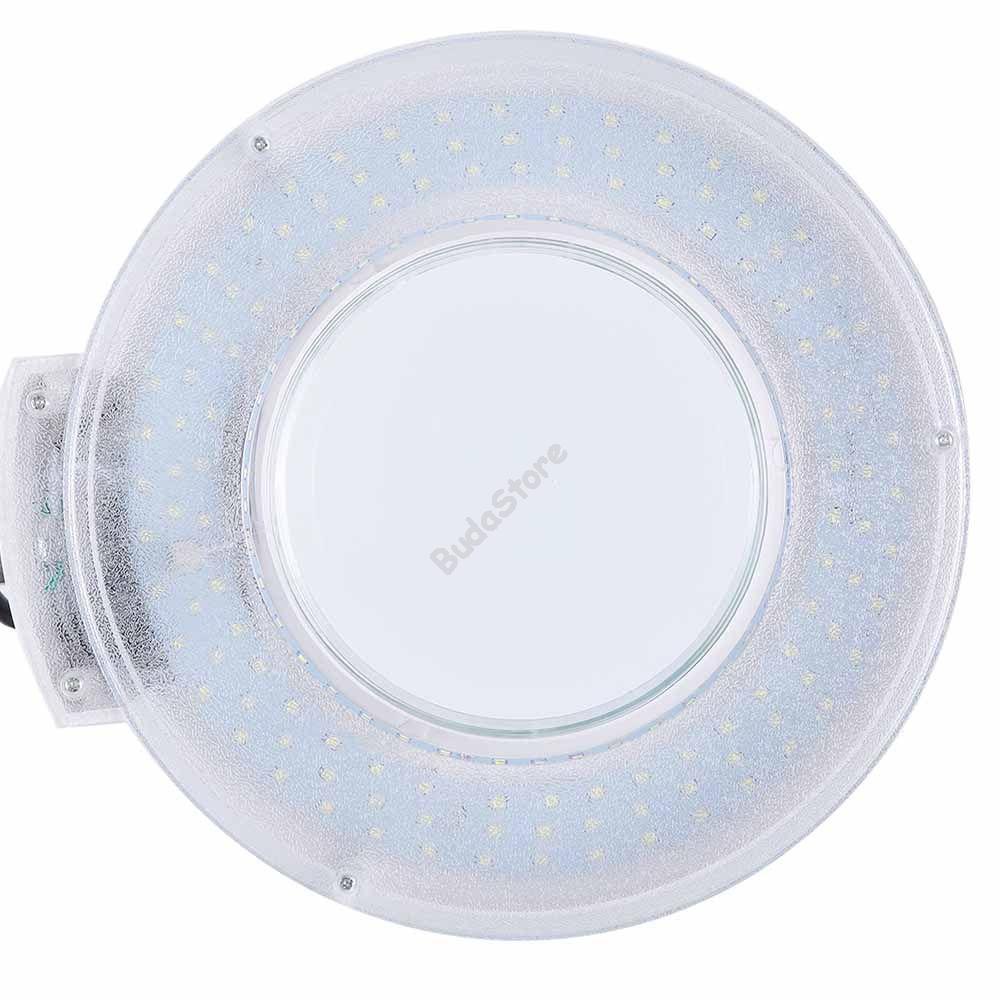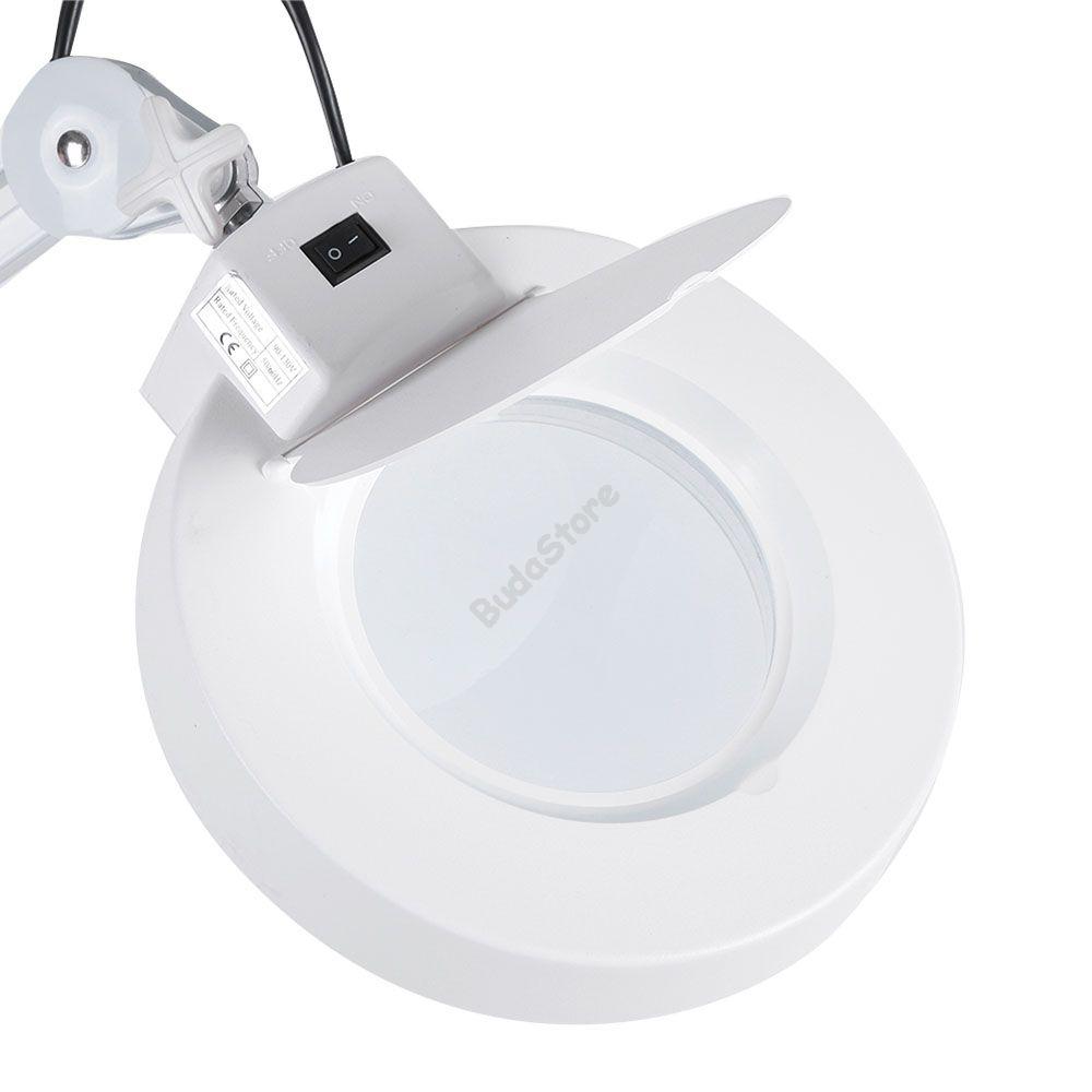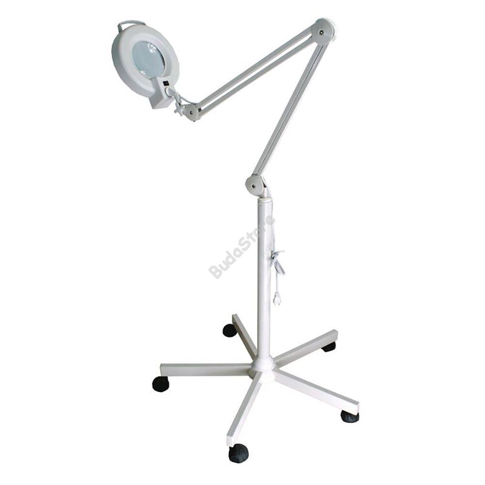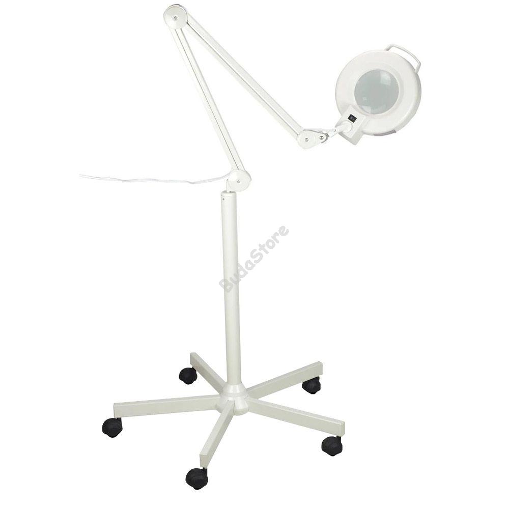 Kör alakú nagyítóval felszerelt kozmetikai állvány, ami megfelelő megvilágítást biztosít. A 40 db LED izzóval ellátott nagyító megkönnyíti a munkát, ideális manikűr, pedikűr kezelésekhez és kozmetikai szalonokba. Az állvány három rúdból áll, amik 56 cm, 53 cm és 53 cm hosszúságúak. Az állvány kerekekkel van ellátva, ezáltal a szerkezet könnyen mozgatható. A nagyító lencséje 5 dioptriás nagyítást tesz lehetővé.