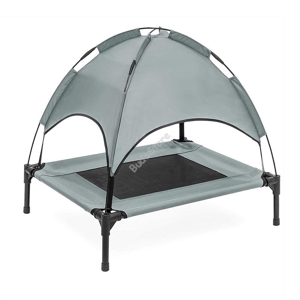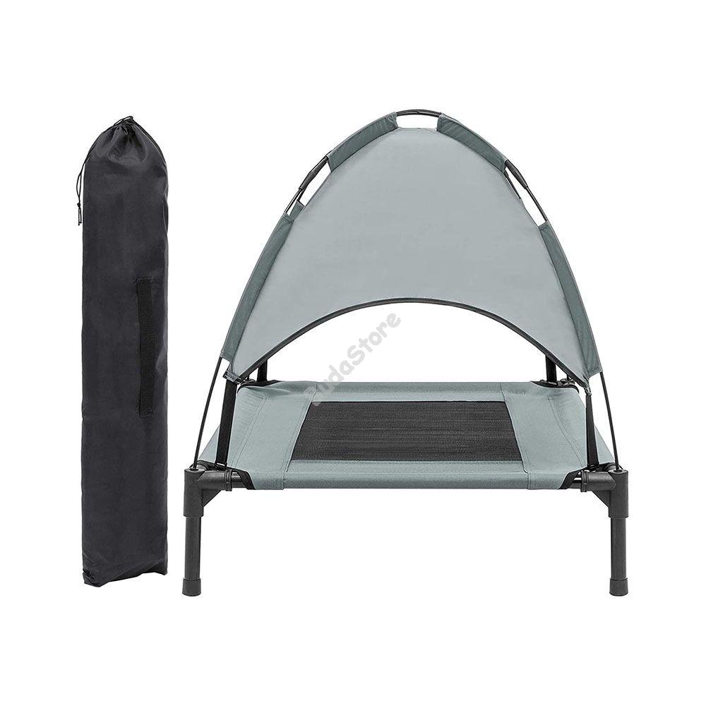 A melegebb időben minden háziállat kedvenc helye lesz ez a naptetős kisállat fekhely. A napellenző megvédi a kutyákat és macskákat a káros napsugárzástól, ami a napos időben kiemelten fontos. A megemelt ágy szellőzést biztosít, így a kisállatok megfelelő hőmérsékletben hűsölhetnek. A fekhely szerkezete stabil és strapabíró, az állatok kényelmesen feküdhetnek rajta. Egyszerűen felállítható és szállítható, bárhova magunkkal vihetjük. A csomagban egy hordozótáska is található, ami megkönnyíti a szállítást. A fekhely M, L és XL méretben érhető el, így minden kisállatnak megfelelő.