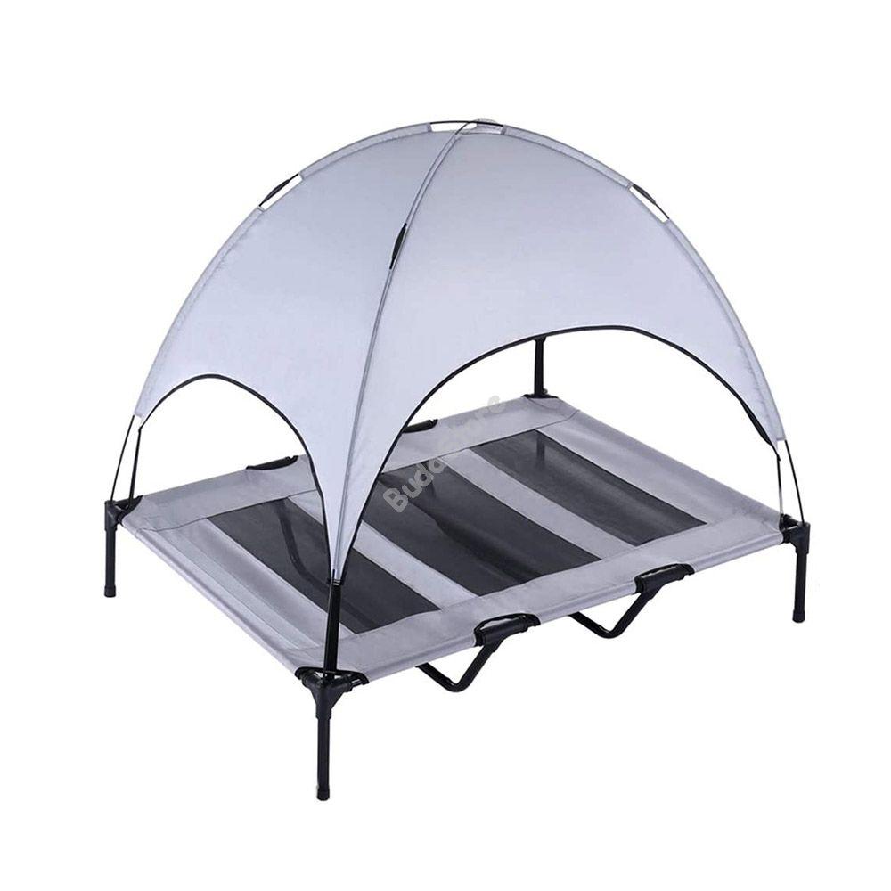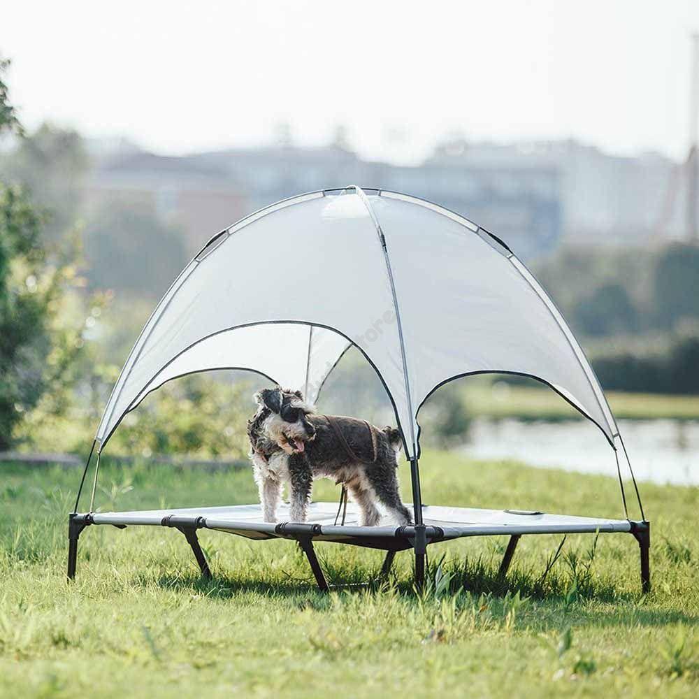 A melegebb időben minden háziállat kedvenc helye lesz ez a naptetős kisállat fekhely. A napellenző megvédi a kutyákat és macskákat a káros napsugárzástól, ami a napos időben kiemelten fontos. A megemelt ágy szellőzést biztosít, így a kisállatok megfelelő hőmérsékletben hűsölhetnek. A fekhely szerkezete stabil és strapabíró, az állatok kényelmesen feküdhetnek rajta. Egyszerűen felállítható és szállítható, bárhova magunkkal vihetjük. A csomagban egy hordozótáska is található, ami megkönnyíti a szállítást. A fekhely M, L és XL méretben érhető el, így minden kisállatnak megfelelő.