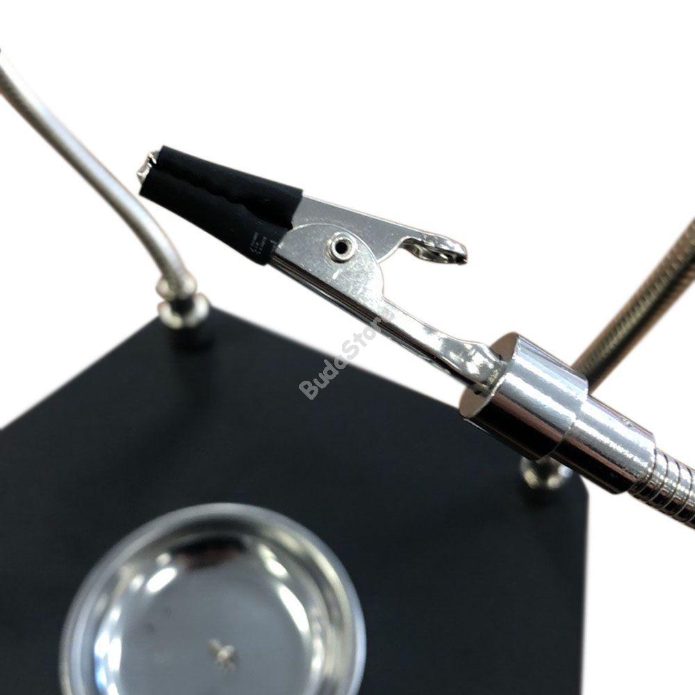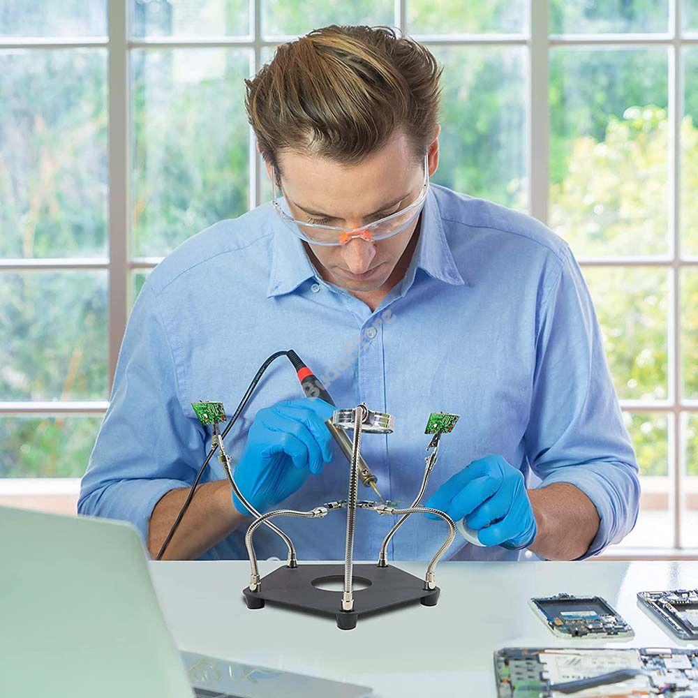 A csiptetős karokkal ellátott nyáklap tartó stabilan tartja az alaplapot forrasztás közben. 4 db 360°-ban forgatható aligátor kapcsokkal ellátott fogójával szükség szerint állíthatod az ideális forrasztási szöget. A rugós, flexibilis karok könnyedén hajlíthatók, így a lehető legtöbb helyet biztosítják kezednek munka közben.