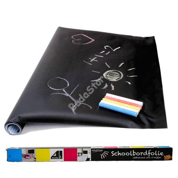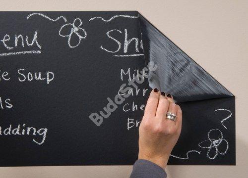 Az öntapadós táblamatrica praktikus és kreatív termék, minden korosztály számára tökéletes. A termék öntapadós, így könnyen felhelyezhető falfelületre, szekrényre, vagy bármilyen más, sima felületre. Ezen kívül pedig a tekercs hátoldalán található jelölések segítségével akkora méretre vághatod, amekkorára szeretnéd. A fekete tábla felületre krétával lehet írni vagy rajzolni, de szivaccsal vagy ronggyal ezek bármikor letörölhetőek és újraírhatóak. A gyerekek rajztáblának, a felnőttek személyes üzenetek, emlékeztetők írására használhatják.