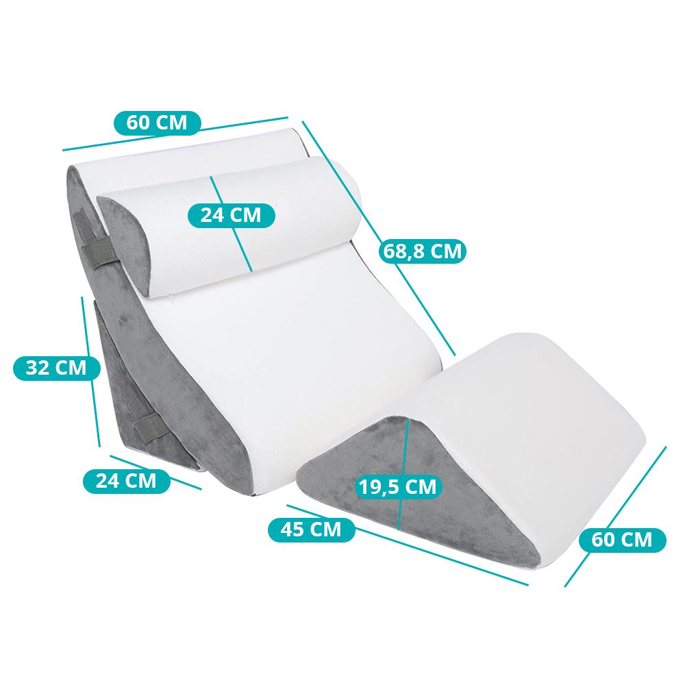 Szerezd be az ortopédiai kialakítású, memória habszivaccsal ellátott párna szettet, mely kellő támasztékot nyújt hátadnak, derekadnak, nyakadnak és lábaidnak egyaránt igénytől függően. A szettet szükség szerint rendezheted el, így kényelmes pihentetést biztosít, miközben tehermentesítheted hátad, nyakad és lábaid is. Kényelmes alátámasztást nyújt lábadnak és gerincednek, így nézheted hátradőlve a tv-t, vagy olvashatsz is  használata közben. A tépőzárakkal könnyedén összeilleszthető, levehető huzata pedig mosógépben 40 C° -on mosható.