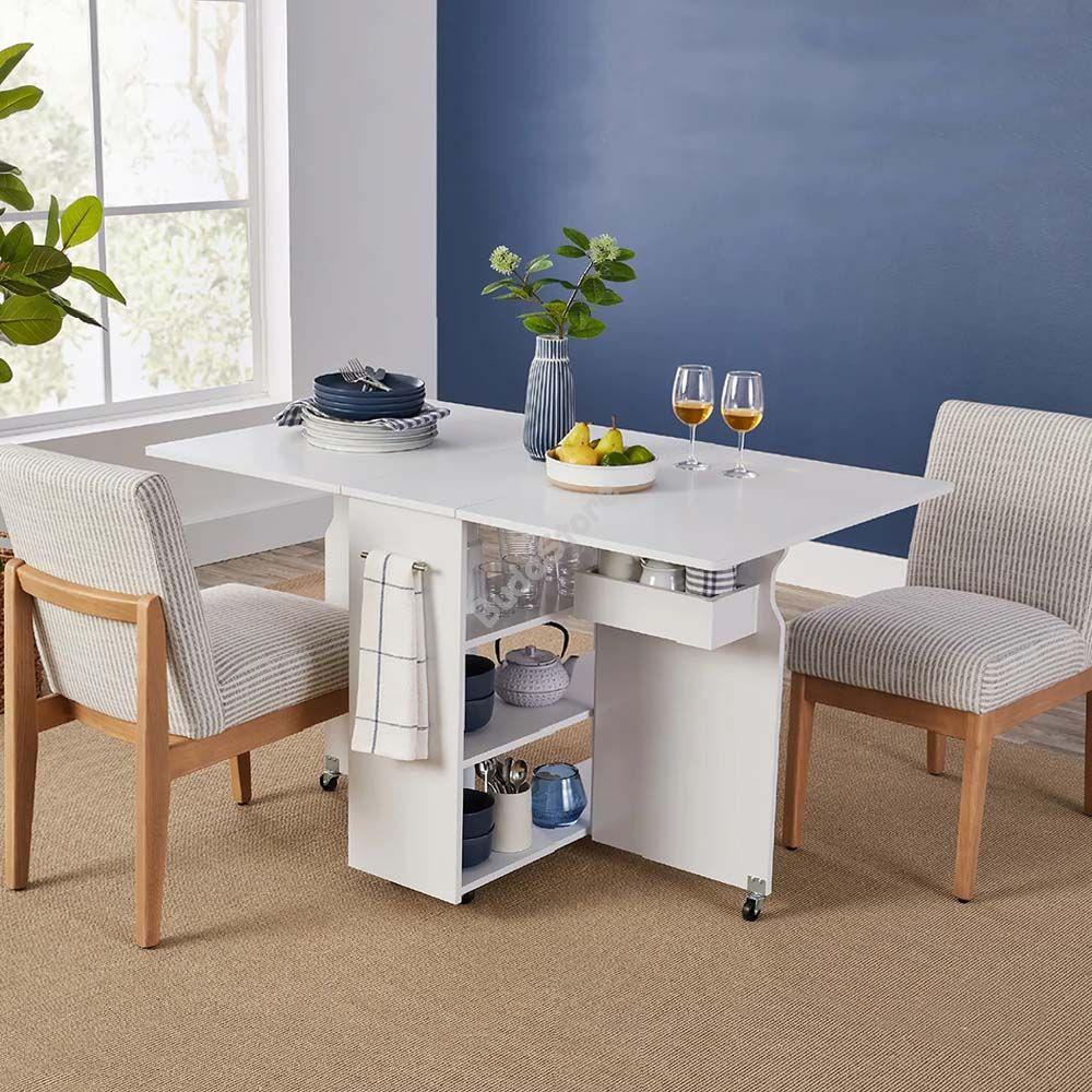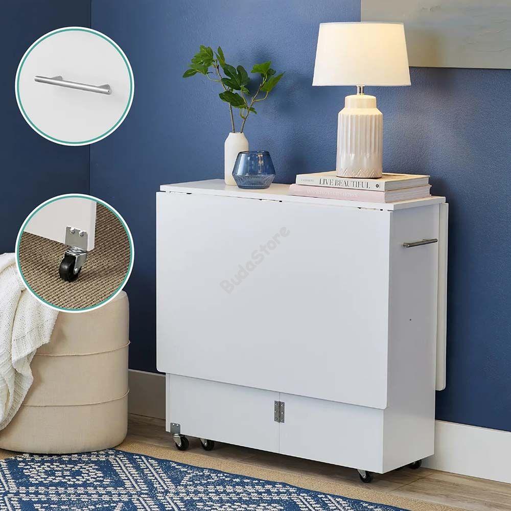 Az összecsukható gurulós asztal, kinyitható asztallapjával a legkisebb lakásokba is praktikus és esztétikus megoldást jelent.