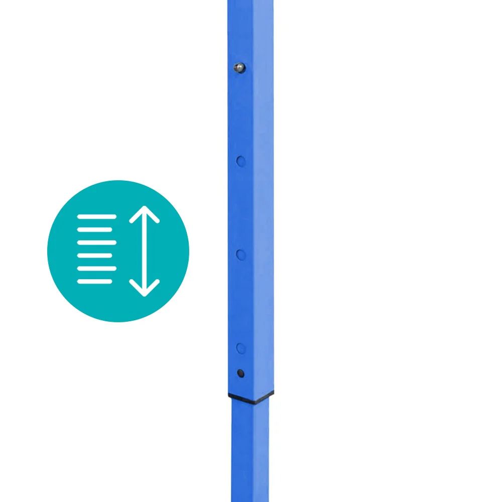 A pavilon fém vázzal rendelkezik, amely kellő stabilitást biztosít, ugyanakkor könnyű szerkezetének köszönhetően egyszerűen mozgatható és szállítható. A gyorsan kihajtható elemek lehetővé teszik a gyors összeállítást és lebontást, így időt és energiát spórolhatsz meg.