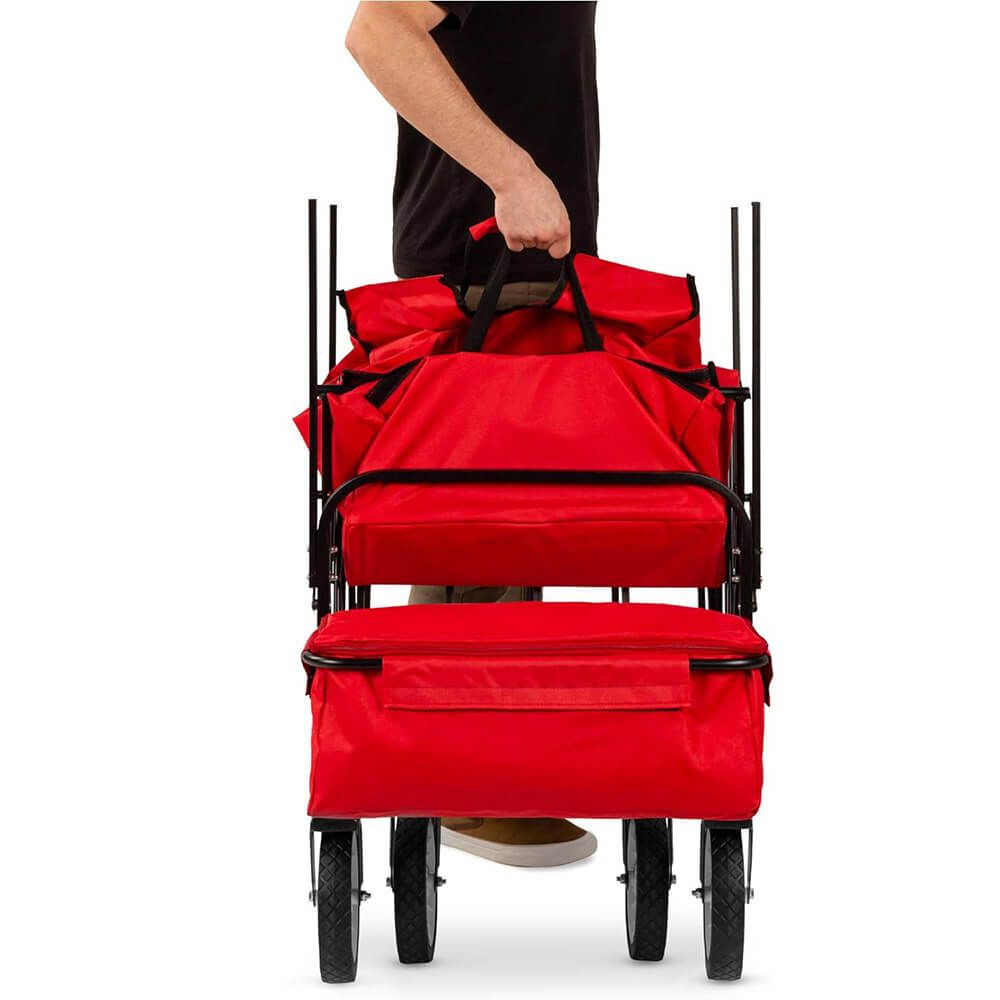 A húzható kocsi kivehető belső borítása és a tető könnyen tisztítható, a váz pedig egyszerűen összecsukható így bárhová magaddal viheted. Tárolása nem igényel nagy helyet, a garázsban bárhol, vagy éppen egy szekrényben is elfér.