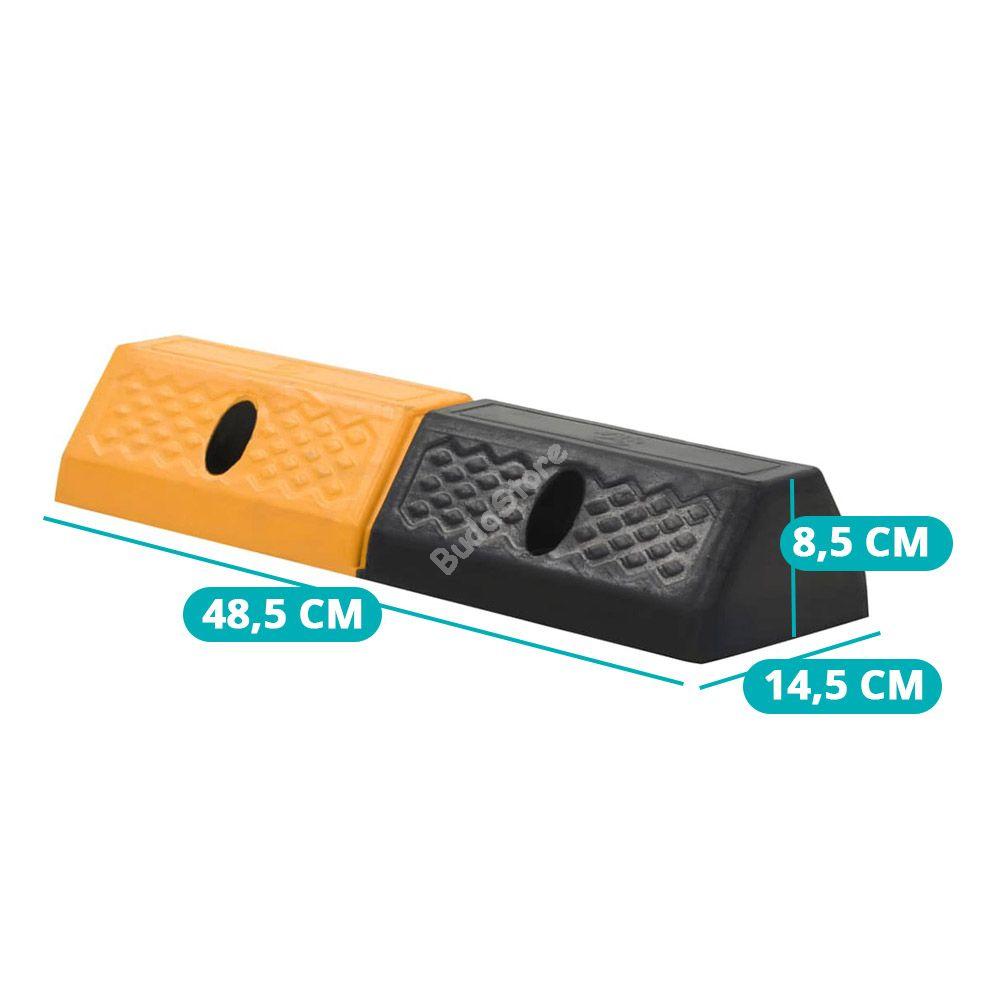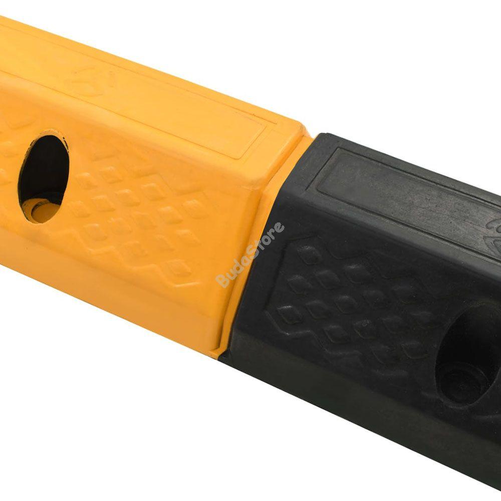 2 db-os parkolás ütközőnkkel most biztonságosan parkolhatsz. Tömör gumiból készült, így strapabíró és időtálló. Két rögzítőnyílás került kialakításra a csavaroknak, melyekkel könnyedén rögzítheted bármilyen felülethez. Dombornyomott mintázatának és élénk színének köszönhetően csúszásmentes és kiválóan látható.