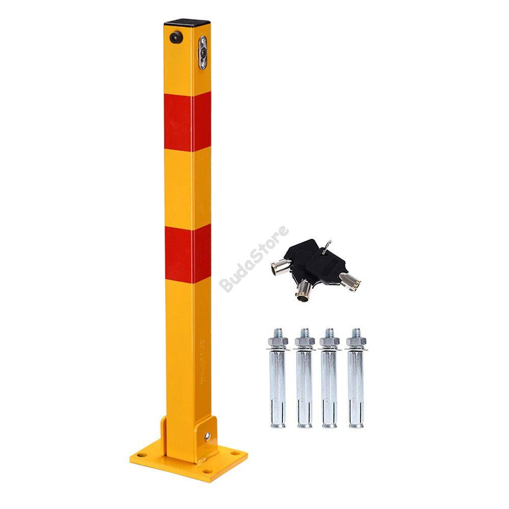 A 2 db lehajtható parkolásgátló oszlop tökéletes védelmet nyújt parkolókban, vagy akár egy terület elzárásához is alkalmas a gépjárművek elől. 4 csavarral stabilan a földhöz rögzíthetőek melyek a csomag részét képezik. UV védelemmel ellátott acél szerkezete fényvisszaverő csíkokkal hivja fel a közlekedők figyelmét. Használaton kívül 2 irányba lehajtható, ezzel megnyitva az adott területet az érkező autók előtt. Az oszlop speciális zárral van ellátva, melyhez 3 kulcs tartozik.