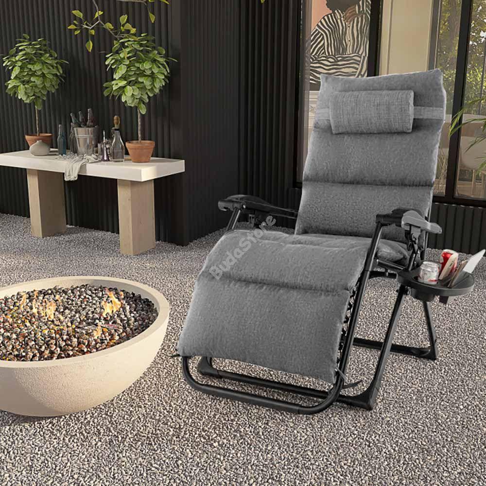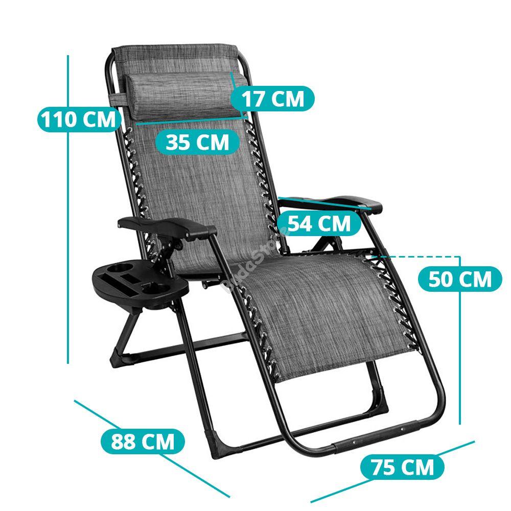 Gravitációs székünk levehető huzattal és párnázott kialakításával magával ragadó kényelmet biztosít számodra, miközben stílusos eleme lesz kertednek, teraszodnak egyaránt. A vastag, párnázott ülőfelület és háttámla elősegíti a kényelmes pihenést, levehető fejtámlája pedig maximális komfortérzetet biztosít. Oldalsó tárolórekeszébe helyezhetsz üdítőt, könyvet, mobiltelefont így minden a kezed ügyében lesz ha szükséged lenne rá. A gravitációs mechanizmus lehetővé teszi, hogy a testsúlyoddal szükség szerint hátra dönthesd . Párnázott huzata levehető, így huzattal és anélkül is használhatod igényeidnek megfelelően.