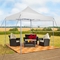 A ponyva hatékonyan csökkenti a közvetlen napsütés és az enyhébb időjárási hatások kellemetlenségeit, így ideális választás kisebb kerti eseményekhez, családi összejövetelekhez vagy baráti grillpartikhoz.