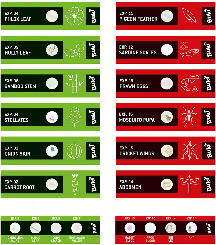 Preparációs szett mikroszkóphoz 20 db kártyával BUKI BUKIMR001 5 590 Ft / db [2 db 2%] [5 db 3%] [10 db 5%] Gyártó: BUKI Cikkszám: S140_BUKIMR001 Vonalkód (EAN13): 3700802102496 Súly: 0,07 kg Mikroszkóp lemezek 20 előkészített mintával, pl. nyúlvér, napraforgópor, stb. A készlet színnesen illusztrált útmutatót tartalmaz.Ajánlott életkor: 8+Kompatibilis a BUKI KT007EU, MS907B és MR600 mikroszkópokkal. Jellemzők Korcsoport: 8 éves kortól Kinek ajánljuk: Lányoknak és fiúknak Mennyiség db Kosárba tesz