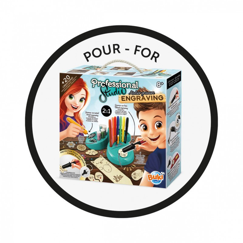 Professzionális stúdió - Gravírozó műhely utántöltő BUKI BUKI5434 4 790 Ft / db [2 db 2%] [5 db 3%] [10 db 5%] Gyártó: BUKI Cikkszám: S140_BUKI5434 Vonalkód (EAN13): 3700802105299 Súly: 0,50 kg Utántöltő készlet a Professzionális stúdió Gravírozó műhelyhez, amellyel új alkotásokat készíthetsz fára és fémre. A csomagban 5 mágnes, 5 kulcstartó és 10 nyaklánc elkészítéséhez elegendő alapanyag található.Az utántöltő csak a Professzionális stúdió Gravírozó műhely BUKI játékkal együtt használható (cikkszám: BUKI5427). Jellemzők Korcsoport: 8 éves kortól Kinek ajánljuk: Lányoknak és fiúknak Mennyiség db Kosárba tesz