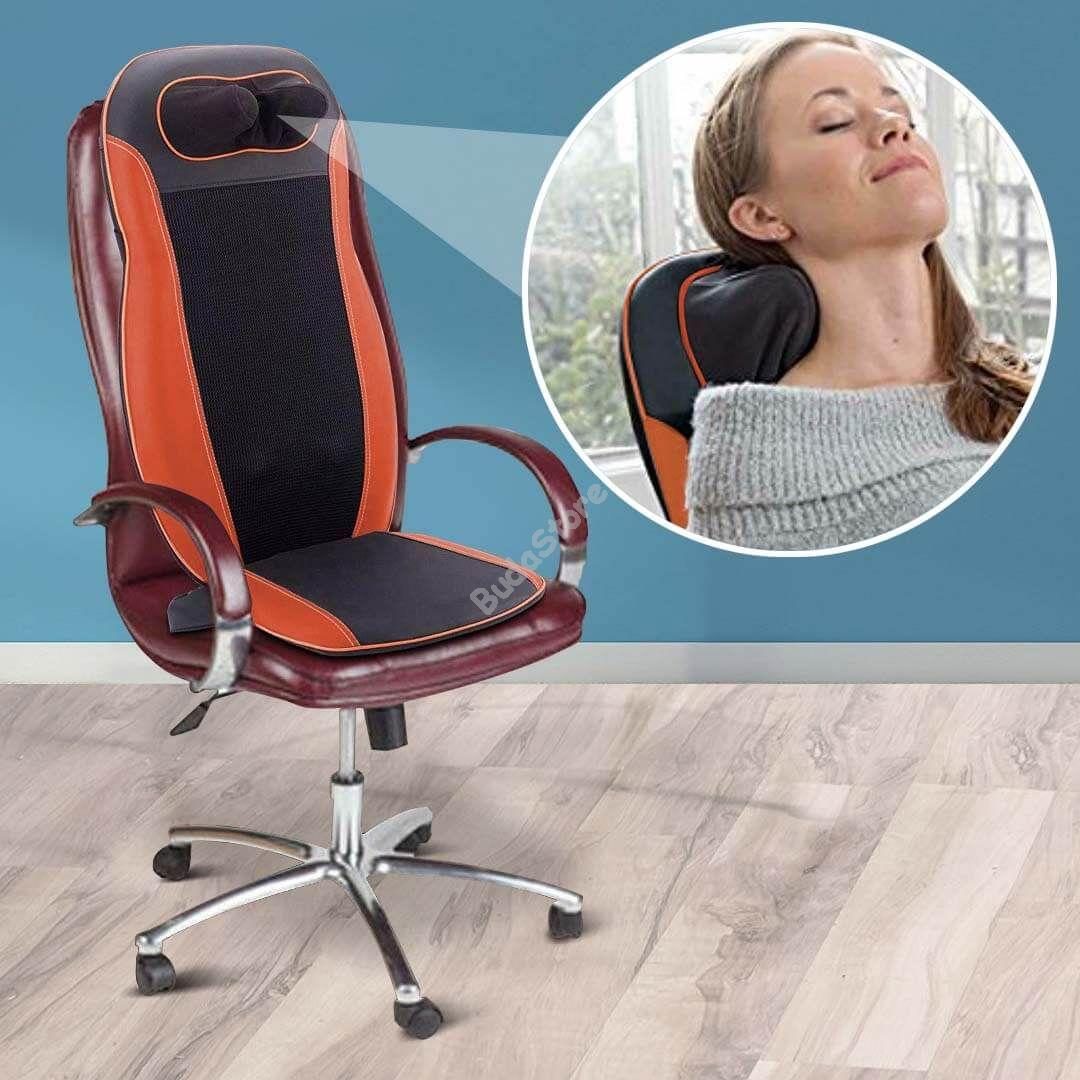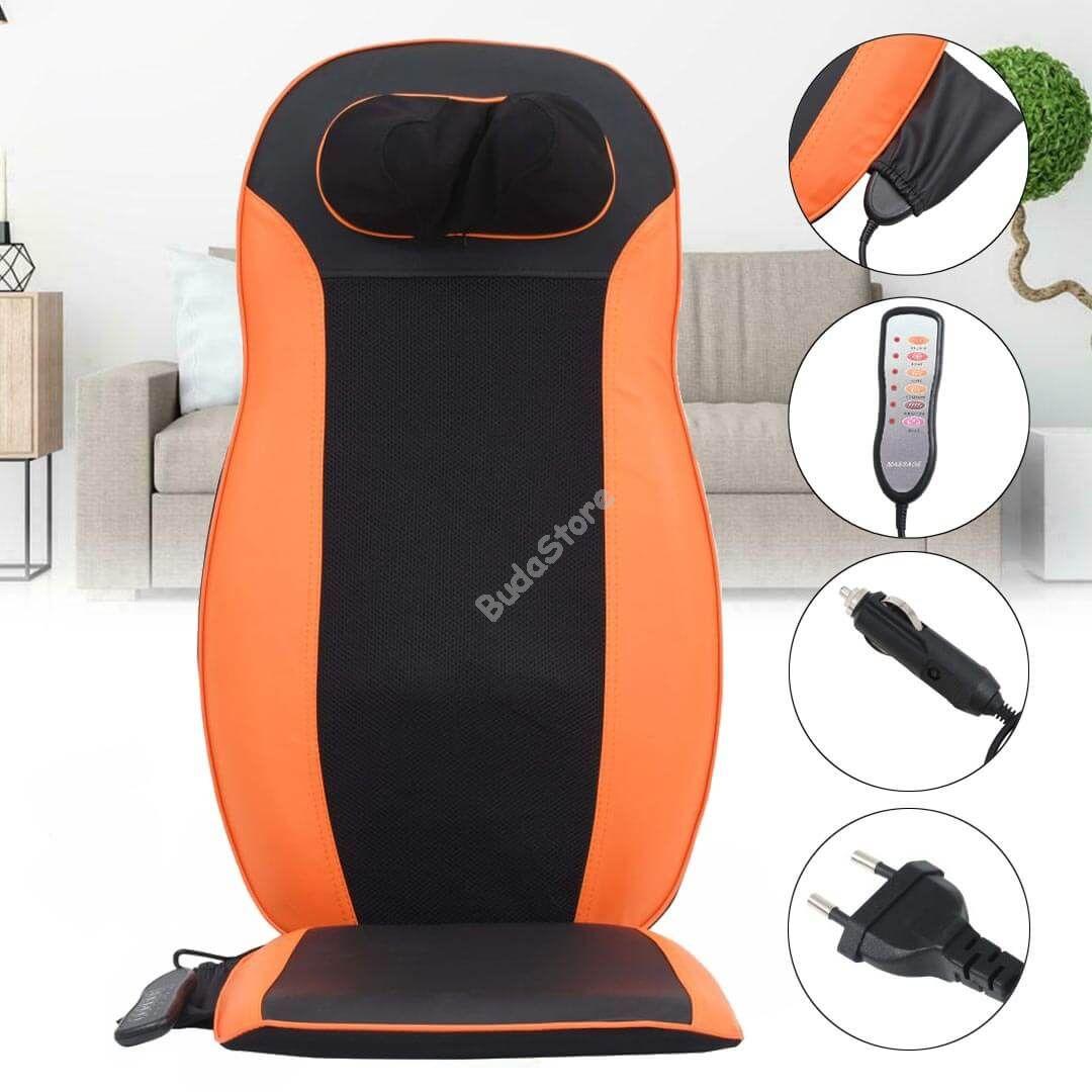 Relax masszázs ülésbetétünket használhatod otthon, vagy az irodában a székhez rögzítve. 3 féle masszázsprogrammal enyhítheted a nyakadban és a hátadban lévő feszültséget. A betét felső és alsó része, külön-külön is üzemeltethető, így a legfájdalmasabb pontokra koncentrálhatsz, sőt az izmok lazítására a melegítő funkciót is igénybe veheted. A háttámla felső részén található masszírozó fej alkalmazható a nyak masszírozására. Olyan mitha profi masszőr kezek dögönyöznének. A rajta található pántok segítségével könnyedén a székhez, üléshez rögzítheted.