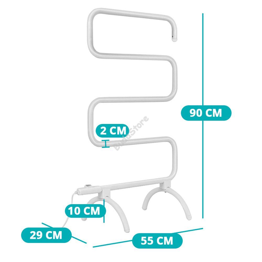 A megfelelő törölközőszárító kiválasztásakor figyelembe kell venni a fürdőszoba méretét illetve az azon szárítani kívánt textilek mennyiségét is. Az S alakú kialakítás lehetővé teszi, hogy nagyobb távolságra kerüljenek a rá helyezett törülközők, és nagyobb szellőzési felületet biztosít. Hálózati áramforráshoz csatlakoztatható, így nincs szükség a fürdőszobai beépítésre. Manuálisan igény szerint ki-és bekapcsolható.