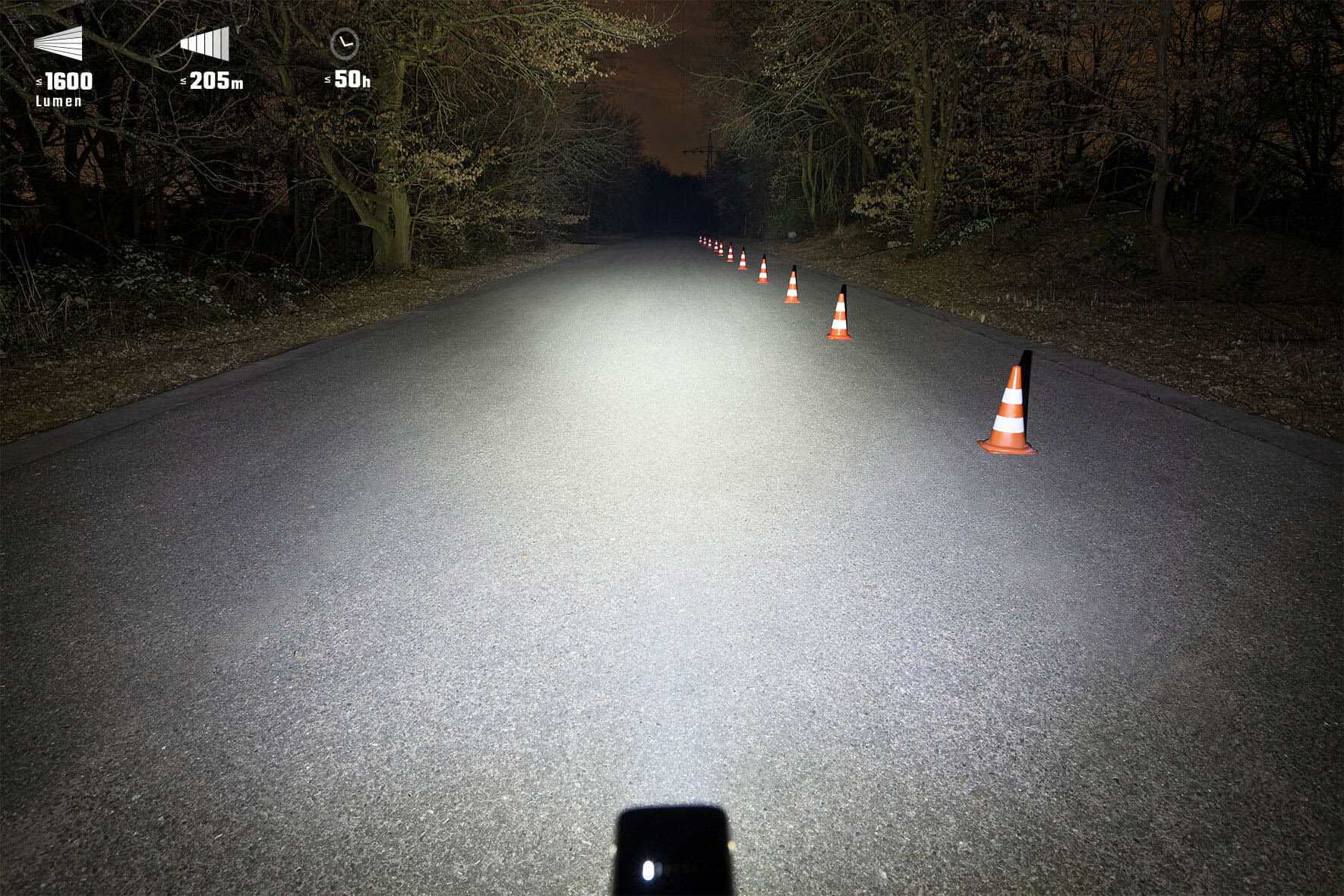 A BUSTER 1600 különleges dupla lencséje eltérő optikákat kombinál, amit kiváló minőségű OSRAM LED-ek egészítenek ki. Az eredmény? Maximális fényerő minden irányba és egyenletes, optimális fényeloszlás.