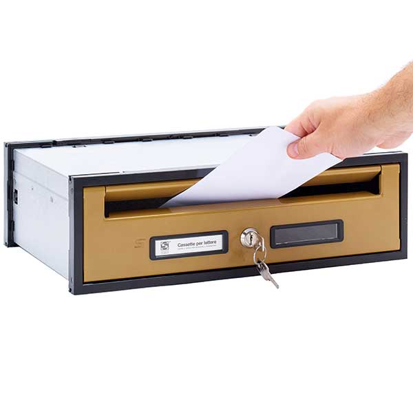 Silmec Scala 501 Arany beépíthető postaláda SC30-501-51 26 580 Ft / [2 2%] [5 3%] [10 5%] Gyártó: Silmec Cikkszám: S005_SC30-501-51 Vonalkód (EAN13): 8025095009655 Súly: 1,95 kg Átvétel: Ez a termék boltunkban személyesen is átvehető. Silmec Scala 501 Arany beépíthető postaláda SC30-501-51 kerítésbe építhető postaláda anyaga tartós alumínium lemez fekete ABS műanyag keret extrém időjárásálló kivitel soroló sínekkel könnyen tömbösíthető ideális befalazható társasházi postaláda elülső bedobónyílás rugós esővédővel elülső felfelé nyíló ajtó betekintő nyílás és névtartó krómozott postaláda zár kettő darab kulccsal többféle színben forgalmazzuk exkluzív kivitelű postaládaTulajdonságokMagasság:125 mmSzélesség:400 mmMélység:250 mmAjtó magasság:20 mmAjtó szélesség:330 mmAnyag:AlumíniumSzín:AranyTömeg:1,95 kg Mennyiség Kosárba tesz