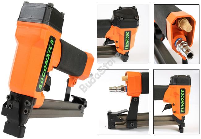 SOCONAILS 1013F Pneumatikus tűzőgép 113249 27 600 Ft / db [2 db 2%] [5 db 3%] [10 db 5%] Gyártó: SOCONAILS Cikkszám: S003_113249 Átvétel: Ez a termék boltunkban személyesen is átvehető. SOCONAILS 1013F Pneumatikus tűzőgép 113249 Pneumatikus tűzőgép, 11.7mm széles, 6-13mm hosszú tűzőkapcsokhoz, 100-as tár, kaliber: 20. Kiváló minőségű pneumatikus tűzőgép. Használatát elsősorban bútor és fatárgyak gyártóinak ajánljuk különböző díszítő és záró elemek rögzítésére. Könnyen kezelhető, gyors és erős tűzést biztosít. Használatával a munkaidő a töredékére csökkenthető. - Sűrített levegővel működő. - Működési nyomás: 60 – 90 psi. - Gyorsan újratölthető tár. - Tárkapacitás: 100 tűzőkapocs. - Tűzőkapocs szélesség: 11.7 mm (0.441 col). - Tűzőkapocs hosszúság: 6 mm – 13 mm (1/8 col – 1/2 col). - Kaliber: 20. - Kompakt és könnyű kialakítása miatt hosszú ideig használható a kéz elfáradása nélkül. - Biztonsági kapcsoló a használaton kívüli szerszám véletlenszerű elsütésének elkerülésére. - Ergonomikus markolat a szerszám biztos tartása érdekében. - Méret: 216 mm x 148 mm x 43 mm. - Súly: 0.9 kg. Mennyiség db Kosárba tesz