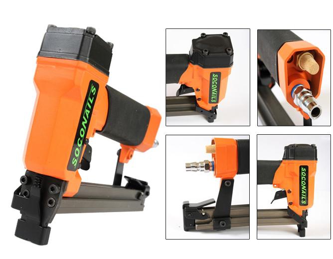 SOCONAILS 6816 Pneumatikus tűzőgép 27 600 Ft / db [2 db 2%] [5 db 3%] [10 db 5%] Gyártó: SOCONAILS Cikkszám: S003_113251 Súly: 1,00 kg Átvétel: Ez a termék boltunkban személyesen is átvehető. SOCONAILS 6816 Pneumatikus tűzőgépKiváló minőségű pneumatikus tűzőgép. Használatát elsősorban bútor és fatárgyak gyártóinak ajánljuk különböző díszítő és záró elemek rögzítésére. Könnyen kezelhető, gyors és erős tűzést biztosít. Használatával a munkaidő a töredékére csökkenthető.- Sűrített levegővel működő.- Működési nyomás: 60 – 90 psi.- Gyorsan újratölthető tár.- Tárkapacitás: 185 tűzőkapocs.- Tűzőkapocs szélesség: 9.5 mm (3/8 col).- Tűzőkapocs hosszúság: 4 mm – 16 mm (5/32 col – 5/8 col).- Kaliber: 23.- Kompakt és könnyű kialakítása miatt hosszú ideig használható a kéz elfáradása nélkül.- Biztonsági kapcsoló a használaton kívüli szerszám véletlenszerű elsütésének elkerülésére.- Ergonomikus markolat a szerszám biztos tartása érdekében.- Méret: 216 mm x 148 mm x 43 mm.- Tömeg: 0.9 kg. Mennyiség db Kosárba tesz