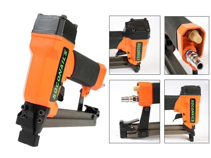 SOCONAILS 7116 Pneumatikus tűzőgép 27 600 Ft / db [2 db 2%] [5 db 3%] [10 db 5%] Gyártó: SOCONAILS Cikkszám: S003_113246 Súly: 0,60 kg Átvétel: Ez a termék boltunkban személyesen is átvehető. SOCONAILS 7116 Pneumatikus tűzőgépKiváló minőségű pneumatikus tűzőgép. Használatát elsősorban bútor és fatárgyak gyártóinak ajánljuk különböző díszítő és záró elemek rögzítésére. Könnyen kezelhető, gyors és erős tűzést biztosít. Használatával a munkaidő a töredékére csökkenthető.- Sűrített levegővel működő.- Működési nyomás: 60 – 90 psi.- Gyorsan újratölthető tár.- Tárkapacitás: 175 tűzőkapocs.- Tűzőkapocs szélesség: 9.5 mm (3/8 col).- Tűzőkapocs hosszúság: 4 mm – 14 mm (5/32 col – 9/16 col).- Kaliber: 23.- Kompakt és könnyű kialakítása miatt hosszú ideig használható a kéz elfáradása nélkül.- Biztonsági kapcsoló a használaton kívüli szerszám véletlenszerű elsütésének elkerülésére.- Ergonomikus markolat a szerszám biztos tartása érdekében.- Méret: 200 mm x 141 mm x 33 mm.- Tömeg: 0.6 kg. Mennyiség db Kosárba tesz