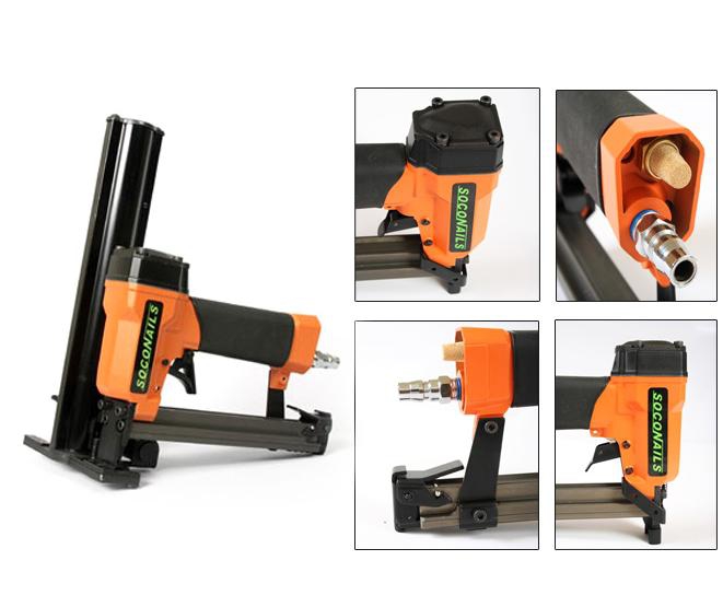 SOCONAILS 8016PC Pneumatikus tűzőgép 71 730 Ft / db [2 db 2%] [5 db 3%] [10 db 5%] Gyártó: SOCONAILS Cikkszám: S003_113261 Súly: 1,50 kg Átvétel: Ez a termék boltunkban személyesen is átvehető. SOCONAILS 8016PC Pneumatikus tűzőgépKiváló minőségű pneumatikus tűzőgép. A tűző kapoccsal együtt egy műanyag záró sapkát is kilő. Használatát elsősorban papír alapú borítások, szigetelő lemezek, tetőfóliák rögzítéséhez ajánljuk. Könnyen kezelhető, gyors és erős tűzést biztosít. Használatával a munkaidő a töredékére csökkenthető.- Sűrített levegővel működő.- Sorozat és egyes lövésre is alkalmas.- Működési nyomás: 70 – 100 psi.- Gyorsan újratölthető tár.- Tárkapacitás: 100 tűzőkapocs.- Tűzőkapocs szélesség: 10 mm (3/8 col).- Tűzőkapocs hosszúság: 5 mm – 16 mm (1/4 col – 5/8 col).- Műanyag rögzítős sapka átmérője: 25.4 mm (1 col).- Kompakt és könnyű kialakítása miatt hosszú ideig használható a kéz elfáradása nélkül.- Biztonsági kapcsoló a használaton kívüli szerszám véletlenszerű elsütésének elkerülésére.- Ergonomikus markolat a szerszám biztos tartása érdekében.- Méret: 200 mm x 274 mm x 120 mm.- Tömeg: 1.5 kg. Mennyiség db Kosárba tesz