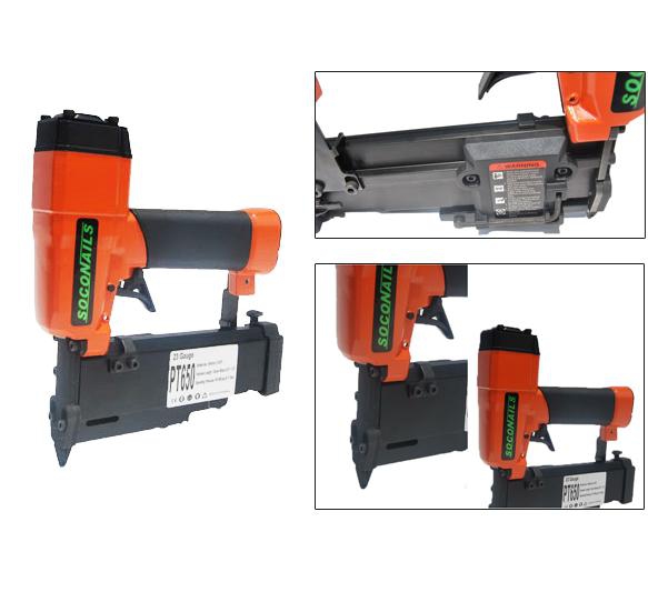 SOCONAILS PT650 Pneumatikus síktáras szögbelövő gép 69 740 Ft / db [2 db 2%] [5 db 3%] [10 db 5%] Gyártó: SOCONAILS Cikkszám: S003_113267 Súly: 1,50 kg Átvétel: Ez a termék boltunkban személyesen is átvehető. SOCONAILS PT650 Pneumatikus síktáras szögbelövő gépKiváló minőségű pneumatikus, síktáras szögbelövő gép. Használatát elsősorban könnyű faszerkezetekhez, befejező munkákhoz, dekorációs elemek rögzítéséhez, sarokcsapolások rögzítéséhez, tükrök és képek keretezéséhez ajánljuk.- Sűrített levegővel működő.- Működési nyomás: 70 – 100 psi.- Gyorsan újratölthető tár.- Tárkapacitás: 100 szög.- Szög hosszúság: 12 mm – 50 mm (1/2 col – 2 col).- Szögfej átmérő: 0.64 mm.- Kaliber: 23.- Kompakt és könnyű kialakítása miatt hosszú ideig használható a kéz elfáradása nélkül.- Szűkített orr rész a sarkok és szűk helyek eléréshez.- Gyorsan leszerelhető takaró burkolat a tisztítási művelet elvégzéséhez.- Ergonomikus markolat a szerszám biztos tartása érdekében.- Méret: 201 mm x 229 mm x 45 mm.- Tömeg: 1.3 kg. Mennyiség db Kosárba tesz