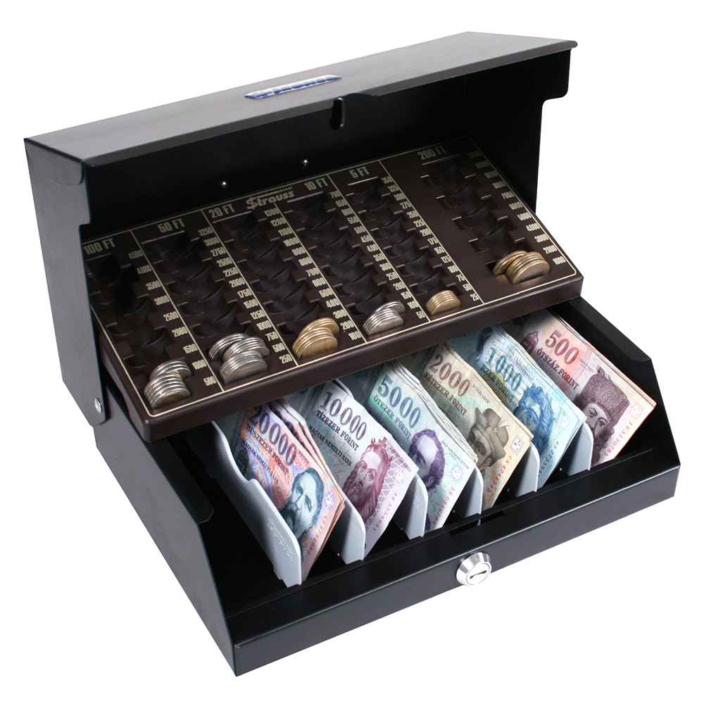 STRAUSS METAL Budapest pénzkazetta 45 340 Ft / db [2 db 2%] [5 db 3%] [10 db 5%] Gyártó: STRAUSS METAL Cikkszám: S005_SM010702 Súly: 2,90 kg Átvétel: Ez a termék boltunkban személyesen is átvehető. Euro Tresor Budapest Fekete profi pénztárkazetta Forint-hoz SM010702 hajlított acéllemez ház és fedél nyitáskor felemelkedő műanyag aprópénztartó 5, 10, 20, 50, 100 és 200 Ft-os érméknek 7 rekeszes (vertikális) bankjegytartó alul kivehető, műanyag elválasztó lapok erős nikkelezett fogantyú cilinderzár kettő darab kulccsal fekete színben kaphatóTulajdonságokZárszerkezet:KulcsosMagasság:145 mmSzélesség:315 mmMélység:225 mmSzín:FeketeTömeg:2,9 kg Mennyiség db Kosárba tesz