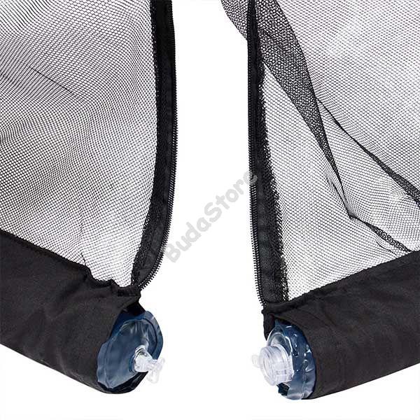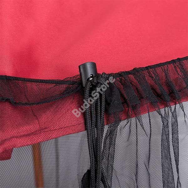 Maximum 2,7 méter átmérőjű napernyőre ajánlott. Áttetsző szellős anyagból készült, cipzárral záródó bejárattal, vízzel tölthető aljjal, ami megakadályozza a háló lebegését. A szúnyogháló mérete: 2,74 méter.