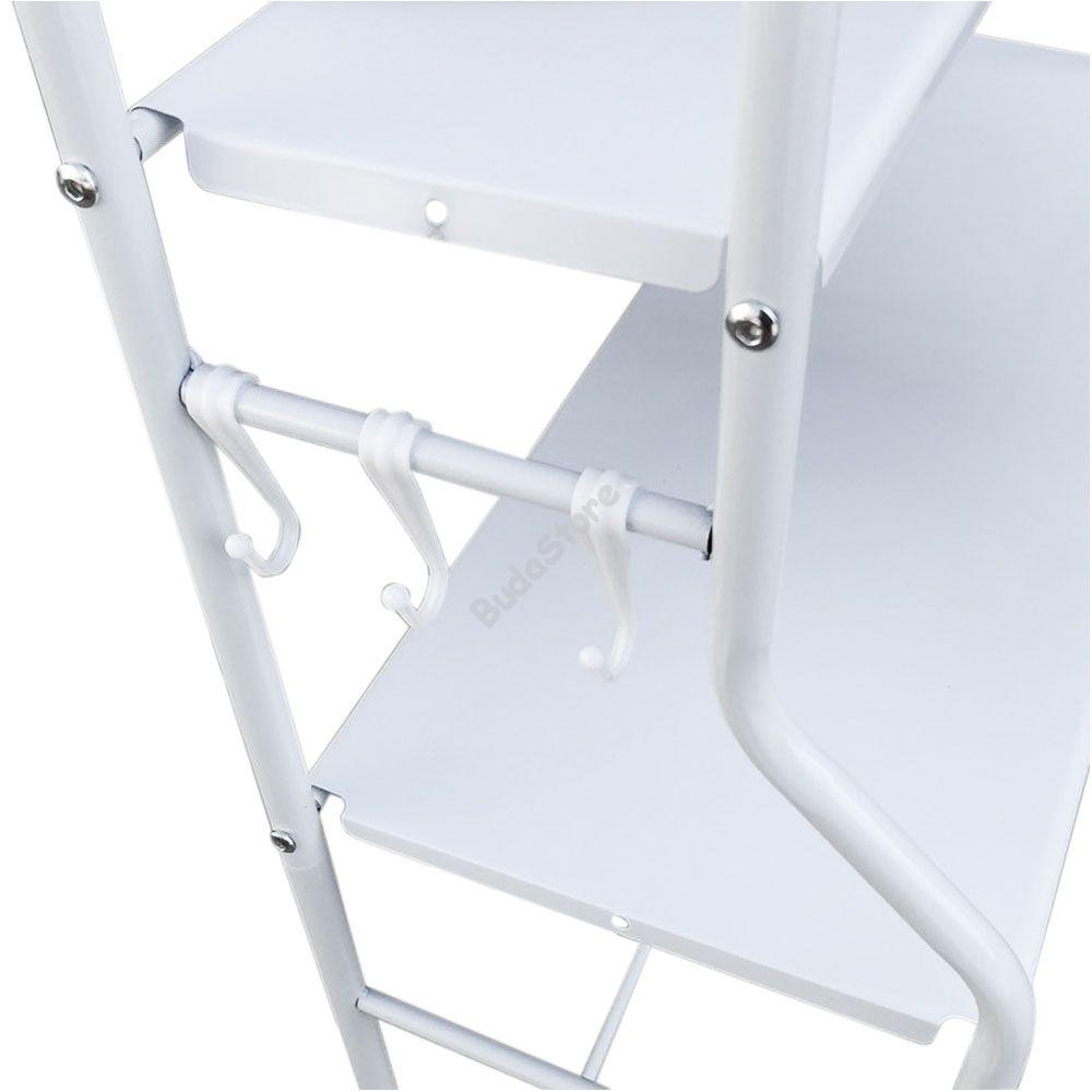 Szinte minden szükséges fürdőszobai kelléked kéznél lesz, hiszen a 3 darab polcon kívül a tároló 3 egyforma akasztó kampót is tartalmaz, melyeket tetszés szerint helyezhetsz el.