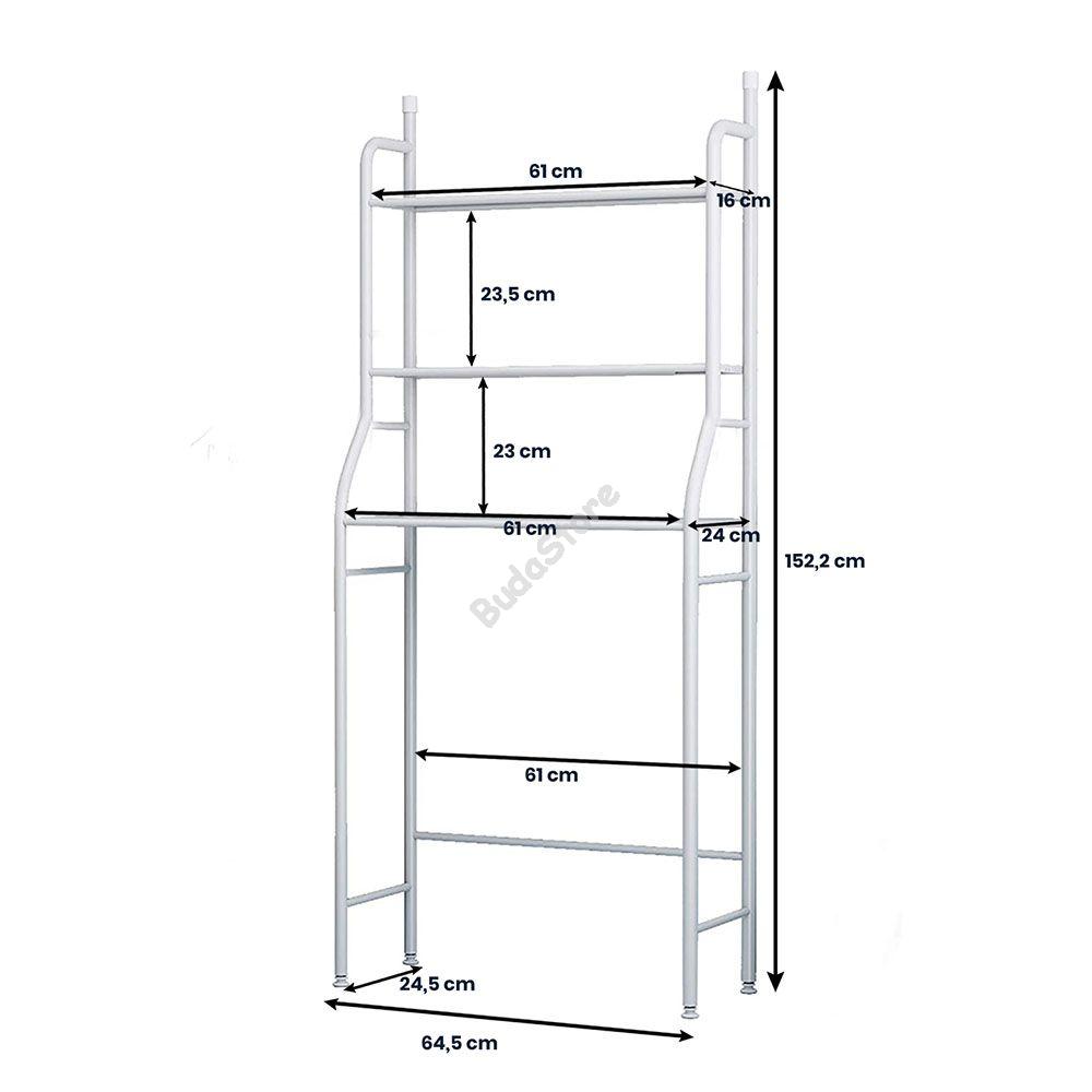 Az állványt a polcok alatt található nagyméretű üres hely teszi alkalmassá arra, hogy toalett vagy akár mosógép fölé állítva a lehető legoptimálisabban helyezzük el.