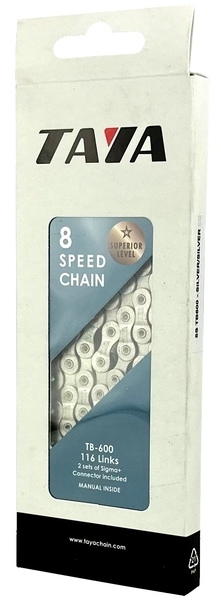 TAYA TB-600 8 sebességes kerékpárlánc ezüst 116L 24604 2 540 Ft / db [2 db 2%] [5 db 3%] [10 db 5%] Gyártó: TAYA Cikkszám: S031_24604 Vonalkód (EAN13): 5996398246043 Súly: 0,50 kg Átvétel: Ez a termék boltunkban személyesen is átvehető. TAYA TB-600 8 sebességes kerékpárlánc ezüst 116L 24604 Anyaga: acél Mérete: 1/2" x 3/32" x 116L Szín: ezüst/ezüst 2 pár patentszemmel. Az ár 1 darabra vonatkozik. Mennyiség db Kosárba tesz