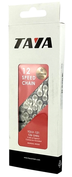 TAYA Tolv-121 12 sebességes kerékpárlánc 24612 8 560 Ft / db [2 db 2%] [5 db 3%] [10 db 5%] Gyártó: TAYA Cikkszám: S031_24612 Vonalkód (EAN13): 5996398246128 Súly: 0,50 kg Átvétel: Ez a termék boltunkban személyesen is átvehető. TAYA Tolv-121 12 sebességes kerékpárlánc 24612 TAYA Tolv-121 12 sebességes kerékpárlánc Váltástsegítő kialakítással és DHT (Diamond Hard Treatment) felületkezeléssel a tartósságért. Anyaga: acél Mérete: 1/2" x 5/64" x 126L Szín: ezüst/szürke 2 pár patentszemmel. Mennyiség db Kosárba tesz