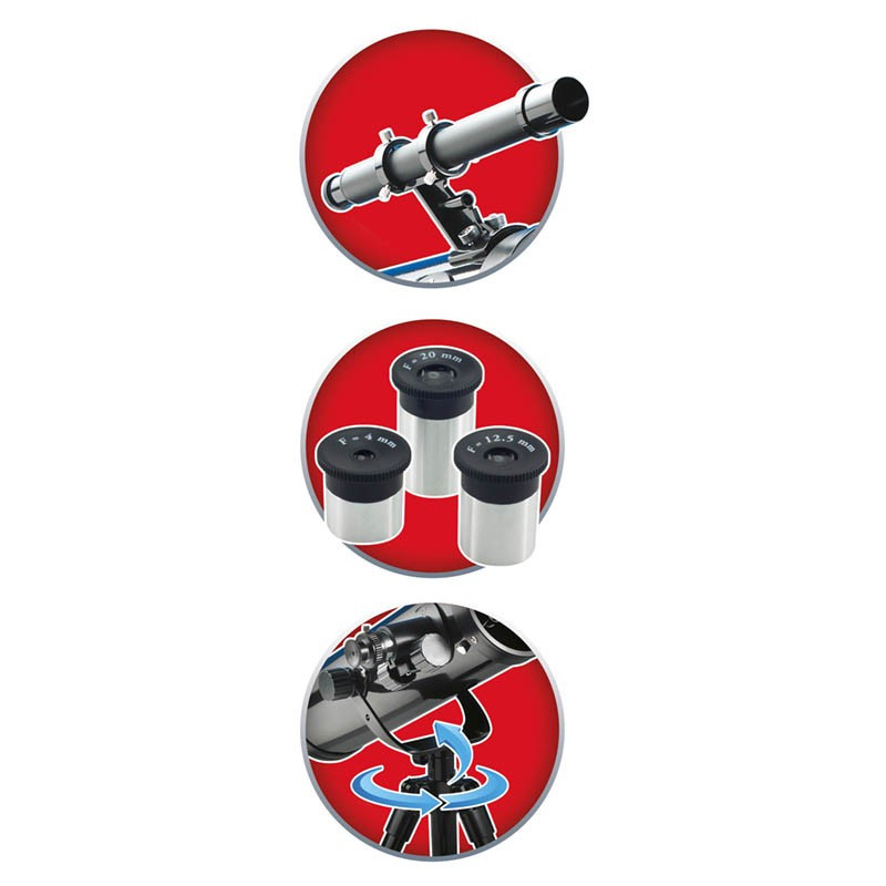 Teleszkóp 50 tevékenységgel BUKI BUKITS008B 51 490 Ft / db [2 db 2%] [5 db 3%] [10 db 5%] Gyártó: BUKI Cikkszám: S140_BUKITS008B Vonalkód (EAN13): 3700802101598 Súly: 3,30 kg Teleszkóp 50 tevékenységgel a Buki France márkától! Fedezd fel a csillagos eget, a bolygókat a Hold krátereit! A teleszkóphoz tartozik egy 76 mm átmérőjű lencse és három cserélhető okulár (20, 12,5 és 4 mm). Az állvány mérete 76 cm. A cső és az állvány fémből készült.Számos tartozékot található a dobozban: 6x25 mm-es keresőlencse, 3x Barlow-objektív, térkép a csillagok azonosításához.Kor: 8 éves kortól ajánlottDoboz méretei: 51,50 x 16,50 x 29,70 cm Jellemzők Korcsoport: 8 éves kortól Kinek ajánljuk: Lányoknak és fiúknak Mennyiség db Kosárba tesz