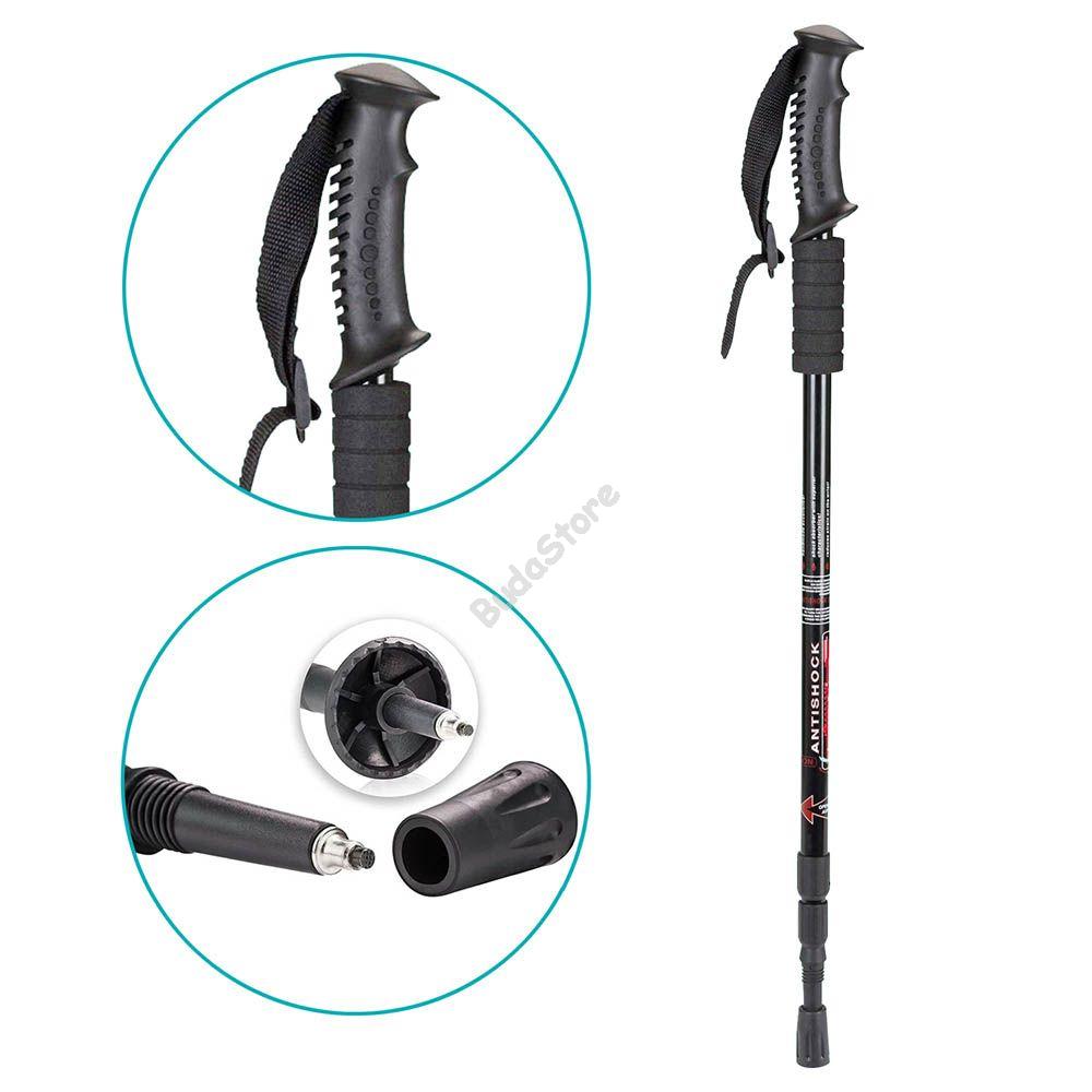Teleszkópos túrabotunk tökéletes választás akár több napos túrákhoz vagy nehezebb kirándulásokhoz. Csúszásmentes markolattal és csuklószíjjal van ellátva a biztosabb fogás érdekében. Teleszkópos kialakításának köszönhetően saját magasságodhoz igazíthatod. Tároló zsákjával magaddal viheted és használatig kis helyen is elfér. 5 pár cserélhető gumírozott talpaival változó időjárási viszonyok esetén is biztonságosan haladhatsz.