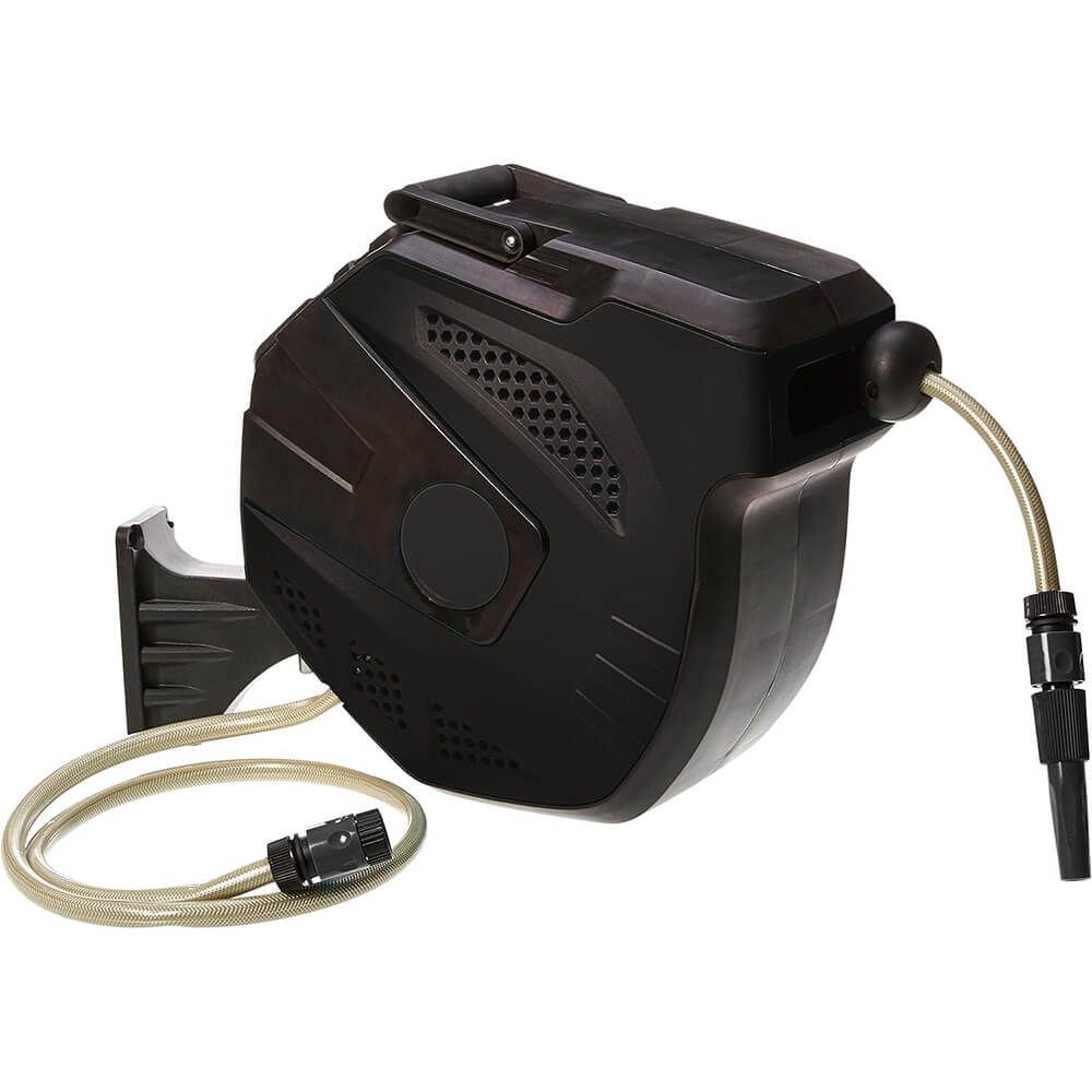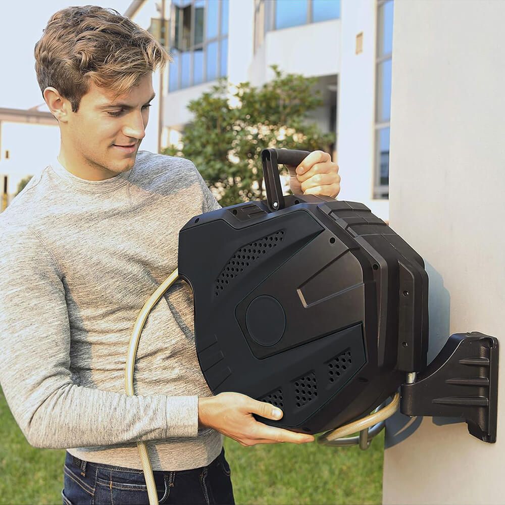 Öntözéshez, autómosáshoz és kerti takarításhoz egyaránt hasznos a kerti locsoló szett, mely 30 méteres hosszúságával kényelmes munkavégzést biztosít. A tömlőkocsi előnye, hogy megakadályozza a slag megtörését, összegubancolódását, miközben praktikus és helytakarékos tároló megoldást biztosít  a kertben. Falra is felszerelheted, így a terasz bármely pontjára felcsavarozhatod, így mégtöbb helyet spórolhatsz. A beépített reteszelési mechanizmus rögzíti a locsóló csövet a kívánt hosszúságra való kihúzás után. A munka végeztével egy könnyed rántással a biztonsági zár kioldható, és a tömlődob automatikusan felcsévéli a locsolótömlőt.