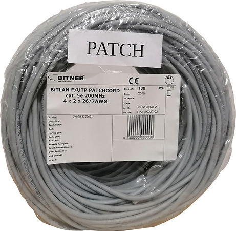 Tömör 4 x 2 x 0,5 U/UTP CAT.5e 200MHz Bitner 100m 120794 18 620 Ft / tekercs [2 tekercs 2%] [5 tekercs 3%] [10 tekercs 5%] Gyártó: BITNER Cikkszám: S003_120794 Átvétel: Ez a termék boltunkban személyesen is átvehető. Tömör, 4 x 2 x 24AWG, U/UTP, CAT.5e, 100m, 200MHz. - U/UTP CAT.5e patch kábel. - Üzemi hőmérséklet: -30°C - 70°C. - Minimális telepítési hőmérséklet: -10°C. - Tömör rézvezető. - 100 méteres tekercsben. - Vezeték típus: 4x2x24AWG. - Hajlítási sugár: 4xD. - DC hurok ellenállás 20°C-on: minimum 190ohm/km. - Vezetők ellenállásainak különbsége: maximum ≤2%. - Kapacitív csatolás: maximum 1600pF/km. Mennyiség tekercs Kosárba tesz