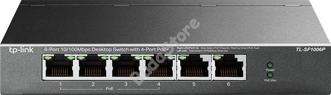TP-LINK TL-SF1006P Hálózati kapcsoló 123413 20 150 Ft / db [2 db 2%] [5 db 3%] [10 db 5%] Gyártó: TP-LINK Cikkszám: S003_123413 Átvétel: Ez a termék boltunkban személyesen is átvehető. PoE switch, 6 x 10/100 Mbps, 4 x PoE, 250 m, 53,5 VDC. - 6 portos PoE switch. - 6 x RJ-45 10/100 Mbps Ethernet csatlakozás. - PoE portok: 1-4. - PoE szabvány: IEEE 802.3af, IEEE 802.3at. - PoE teljesítmény: portonként 30 W, max. 67 W. - MAC-cím tábla: 2 K. - Switch kapacitás: 1,2 Gbps. - Működési hőmérséklet: 0°C - +40°C. - Működési páratartalom: 10% - 90%. - Tápellátás: 53,5 VDC. - Áramfelvétel: 1,31 A. - Teljesítmény: 1,9 W PoE nélkül, 74 W PoE használattal. - Méretek: 158 x 101 x 25 mm. Mennyiség db Kosárba tesz
