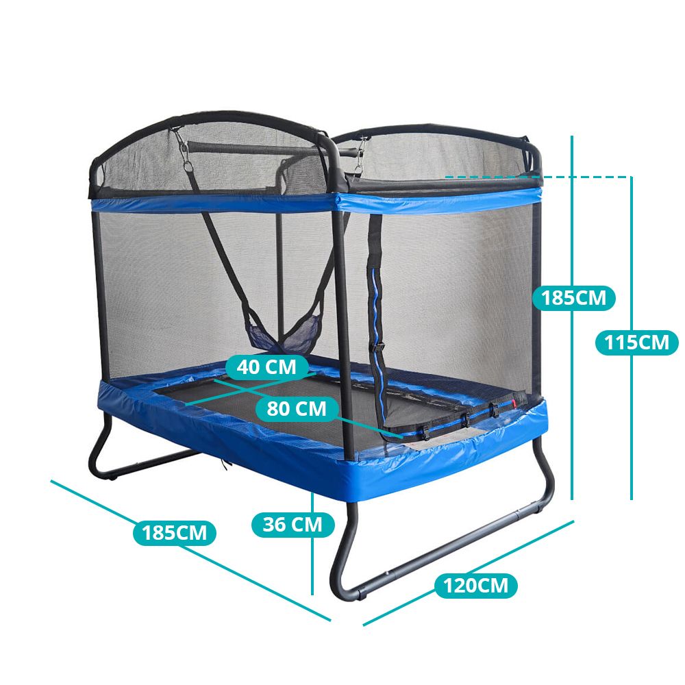 A trambulin minden gyereknek egyet jelent a felhőtlen szórakozás élményével, és már nem csak a játszótéren van lehetősége kiélni magát. A trambulin strapabíró acélból készült, ami biztosítja a stabilitást és biztonságos alapot nyújt a mókázáshoz. 115 cm magas biztonsági hálójának köszönhetően játék közben sem tudnak leesni róla, de mégsem korlátozza őket a szabad mozgásban. A cipzáras bejárat könnyű ki-és bejutást teszt lehetővé, a biztonság maximális szem előtt tartása mellett.