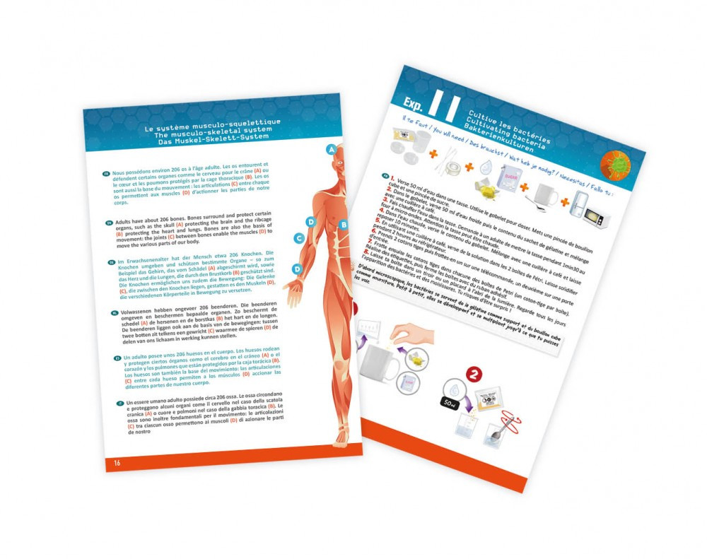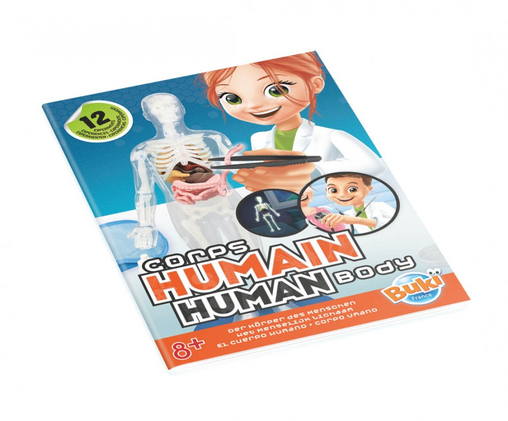 Tudományos készlet-Az emberi test Buki BUKI2163 12 290 Ft / db [2 db 2%] [5 db 3%] [10 db 5%] Gyártó: BUKI Cikkszám: S140_BUKI2163 Vonalkód (EAN13): 3700802103110 Súly: 0,67 kg Az emberi test modellje, lágy szervekkel és foszforeszkáló csontokkal. Fedezd fel 12 kísérlettel az anatómia titkait: ismerd meg az emberi testet, a szerveket . Tenyéssz baktériumokat, hallgasd meg a szívverést a sztetoszkóp segítségével. A doboz mérete: 25 x 6 x 35cmTartalma: 1 testmodell kilenc szervvel, 1 csontváz (12 darab), átlátszó szerkezetek, 1 alap, 1 sztetoszkóp, zöld színezőanyag (5 ml), síp, szemkötő, 3 petricsésze, főzőpohár, zselatin (5 g), csipesz, 10 optikai illúziókártya.Zselatin (9000-70-8) - Élelmiszer-adalékanyag: Ne fogyassza el, kizárólag a kísérletekhez használja!Egyes kísérletekhez kukoricakeményítőre, leveskockára vagy fehér ecetre van szükség, amelyek nem tartoznak a csomaghoz. Jellemzők Korcsoport: 8 éves kortól Kinek ajánljuk: Lányoknak és fiúknak Mennyiség db Kosárba tesz
