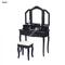 Fából készült, tükrös fésülködő asztal és szék hálószobába, öltözőbe, gardrób szobába. Elegáns fehér vagy fekete színe és kialakítása miatt igazi dísze lesz a lakásnak. A fésülködő asztalba épített szekrény kisebb és nagyobb fiókokkal rendelkezik, melyekbe kényelmesen pakolhatod bele ékszereidet, sminkjeidet, egyéb kiegészítőidet.