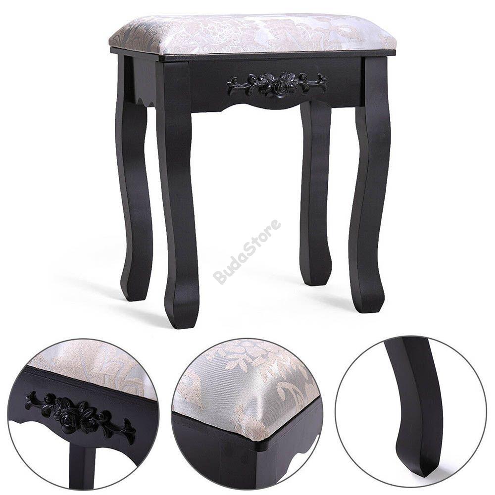 Felső tükrös, polcos része levehető, így akár íróasztalként is funkcionálhat. Domború díszítései klasszikus megjelenést kölcsönöznek az asztalnak és a széknek. A szék felső, párnázott része dekoratív kárpittal van ellátva, ezáltal még különlegesebb.