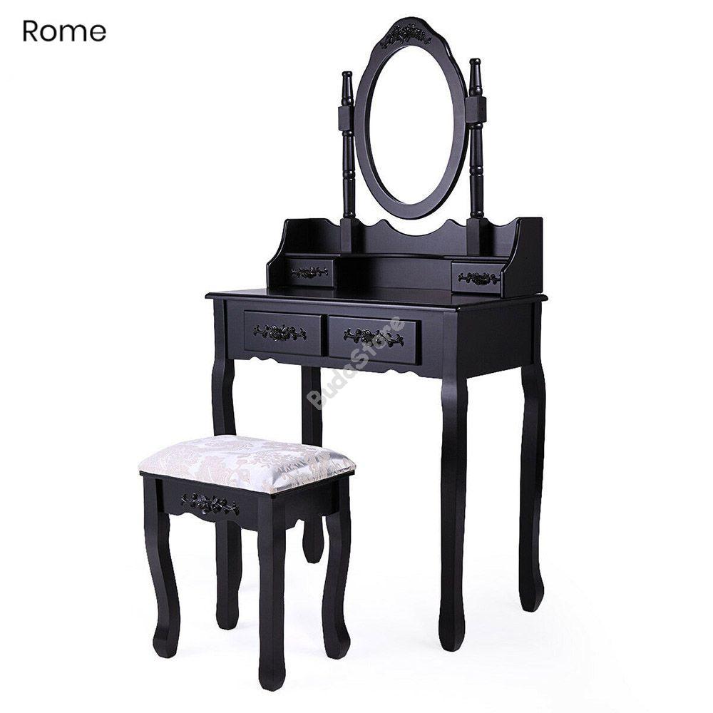 Tükrös fésülködő asztal székkel Rome fekete HOP1000943-2
