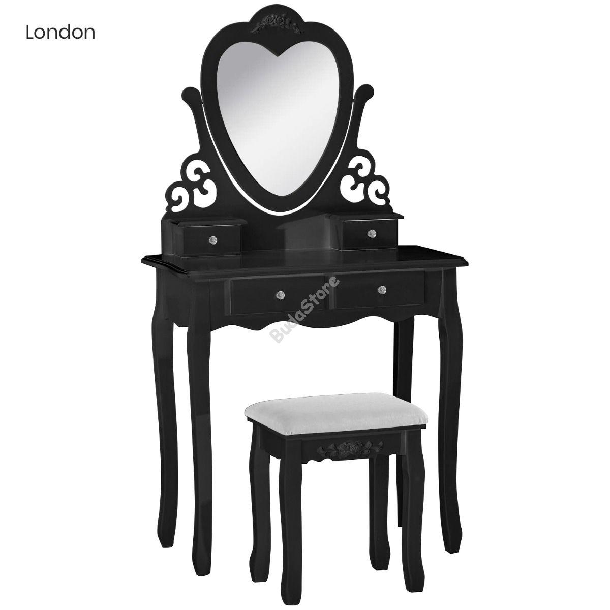 Tükrös fésülködő asztal székkel London fekete HOP1001147-2