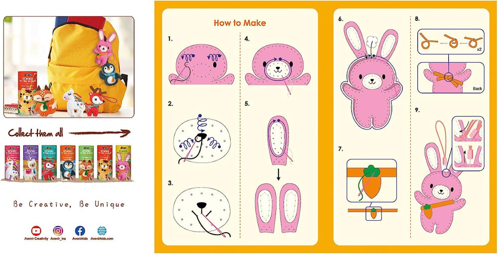 Varrható plüss kulcstartó, Nyuszi Avenir AvenirCH221638 4 990 Ft / db [2 db 2%] [5 db 3%] [10 db 5%] Gyártó: AVENIR KIDS Cikkszám: S140_AvenirCH221638 Vonalkód (EAN13): 6920773316389 Súly: 0,11 kg Készítsd el saját nyuszis kulcstartódat az Avenir varrható plüss készletével. Az egyszerű varrási utasításokat követve könnyedén megvarrhatod ezt az aranyos kis játékot és a tartozék zsínór segítségével bárhová felakaszthatod, például a kulcstartódra, a táskádra, a tolltartódra vagy dekorációként is használhatod a szobádban.A készlet tartalma:- Előre perforált anyagdarabok- Tömő anyag- Gyermekbarát műanyag tű- Fonalak- Kulcstartó zsinórGyönyörű csomagolás, minőségi alapanyagok, tartalmas és szórakoztató játékidő!Az elkészült játék mérete: 21 x 11,5 cmA doboz mérete: 7,5 cm x 7,5 cm x 17 cmAjánlott életkor: 6+Márka: Avenir Jellemzők Korcsoport: 6 éves kortól Kinek ajánljuk: Lányoknak és fiúknak Mennyiség db Kosárba tesz